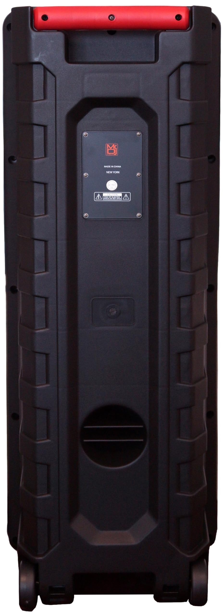 MR DJ NEWYORK+ 12” X 2 Rechargeable Bluetooth Portable PA Party Speaker delivers 4000 Watts PMPO Max power, with TWS, flashing party flame lights, and multiple connectivity options. Ideal for parties and tailgates.