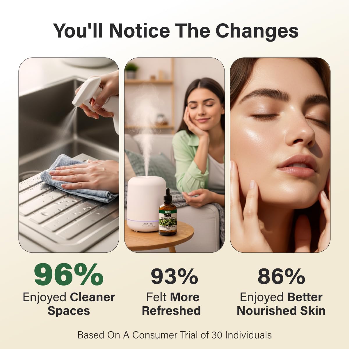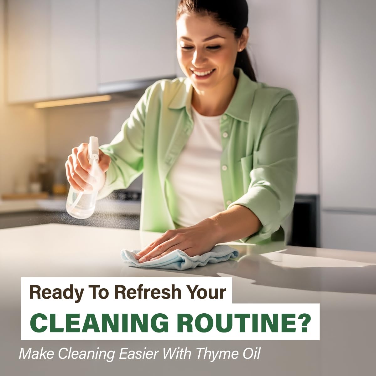 Elevates skincare regimens. Thyme essential oil has skin-nurturing benefits that may help nourish, cleanse and hydrate skin. Revel in soft and clear-looking skin by mixing thyme oil for skin with a moisturizer before applying it on a clean face.