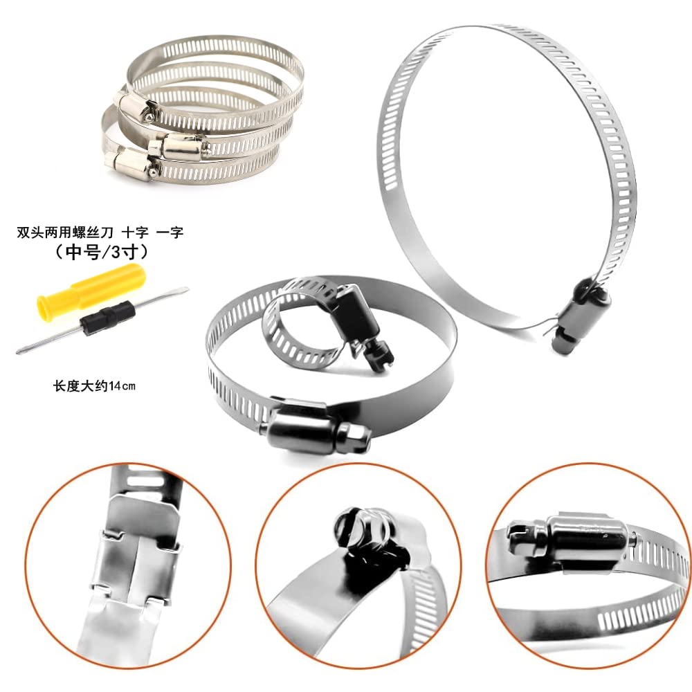 【Easy installation】-Hose clamps are designed with through-hole process, evenly slotted holes, steel belt through-hole, locking and strong twisting force. Stainless steel hose clamps have stronger tightening force and are easy to install.Just loosen or tighten the screw of hose clips by a screwdriver to adjust the size,attach hoses to the fitting tightly.