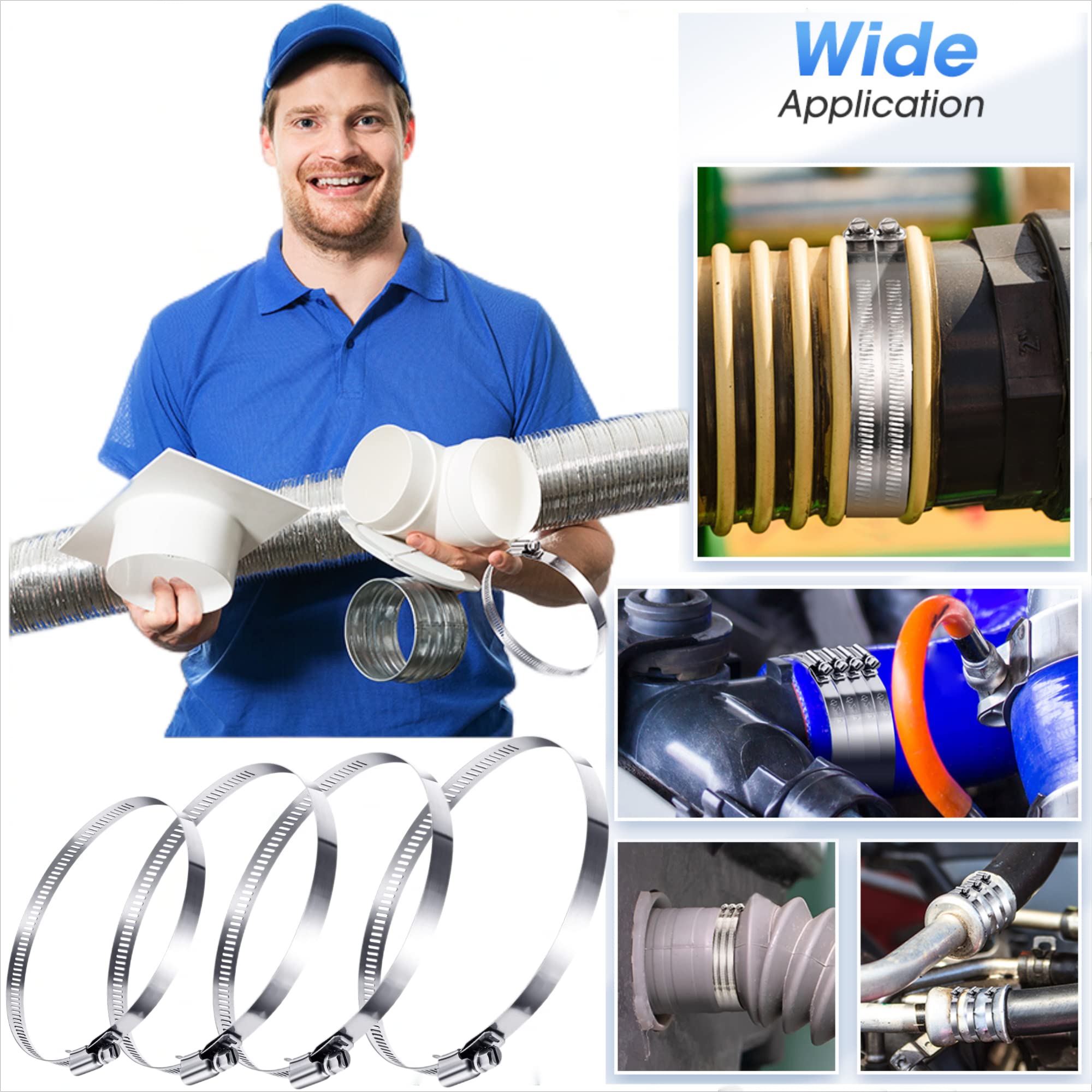 【Wide range of applications】-Stainless steel hose clamps are perfect for home, automotive, industrial, gardening, mechanical, electronic, marine, boat, etc.Hose clamps are perfect for sealing hoses, water pipes, tubes, pipes, fittings, cables, pipes, fuel lines, cars, trucks, indoor or outdoor use.