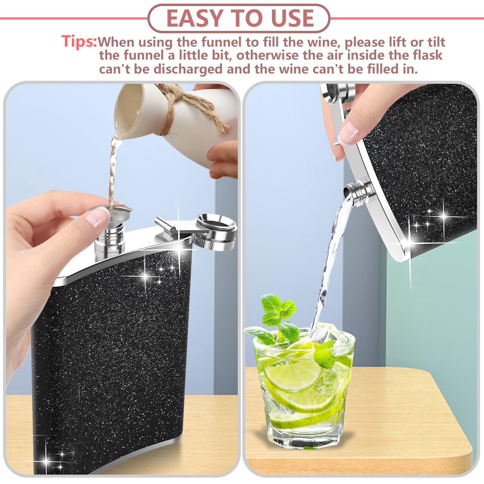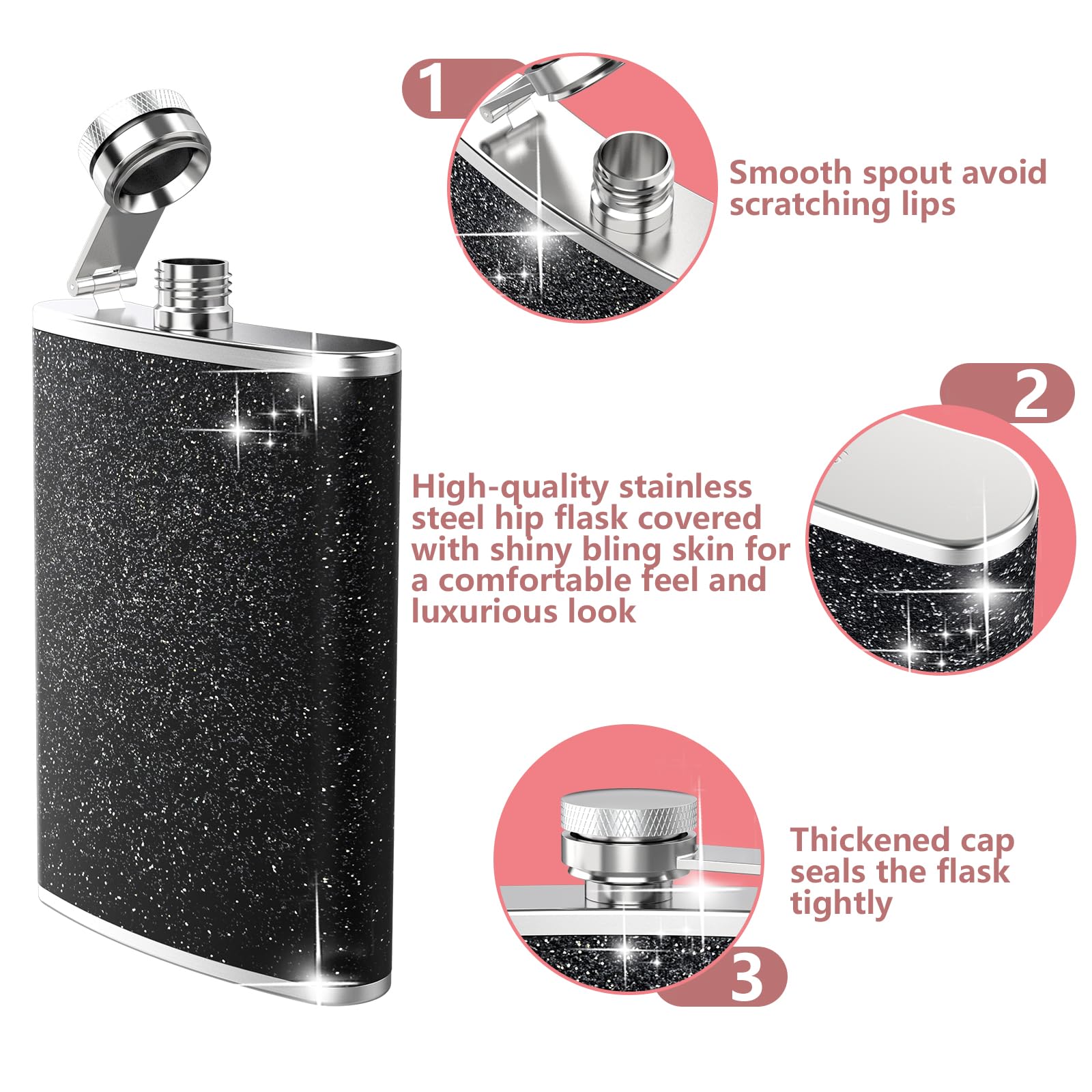 Leak Proof: The whiskey flask has a stainless-steel lid, connected to the flask and wouldn't be lost. The cap is sealed tightly to ensure that beverages will not leak out and be wasted.