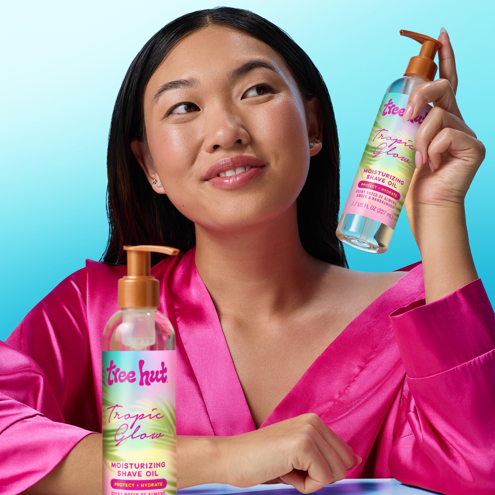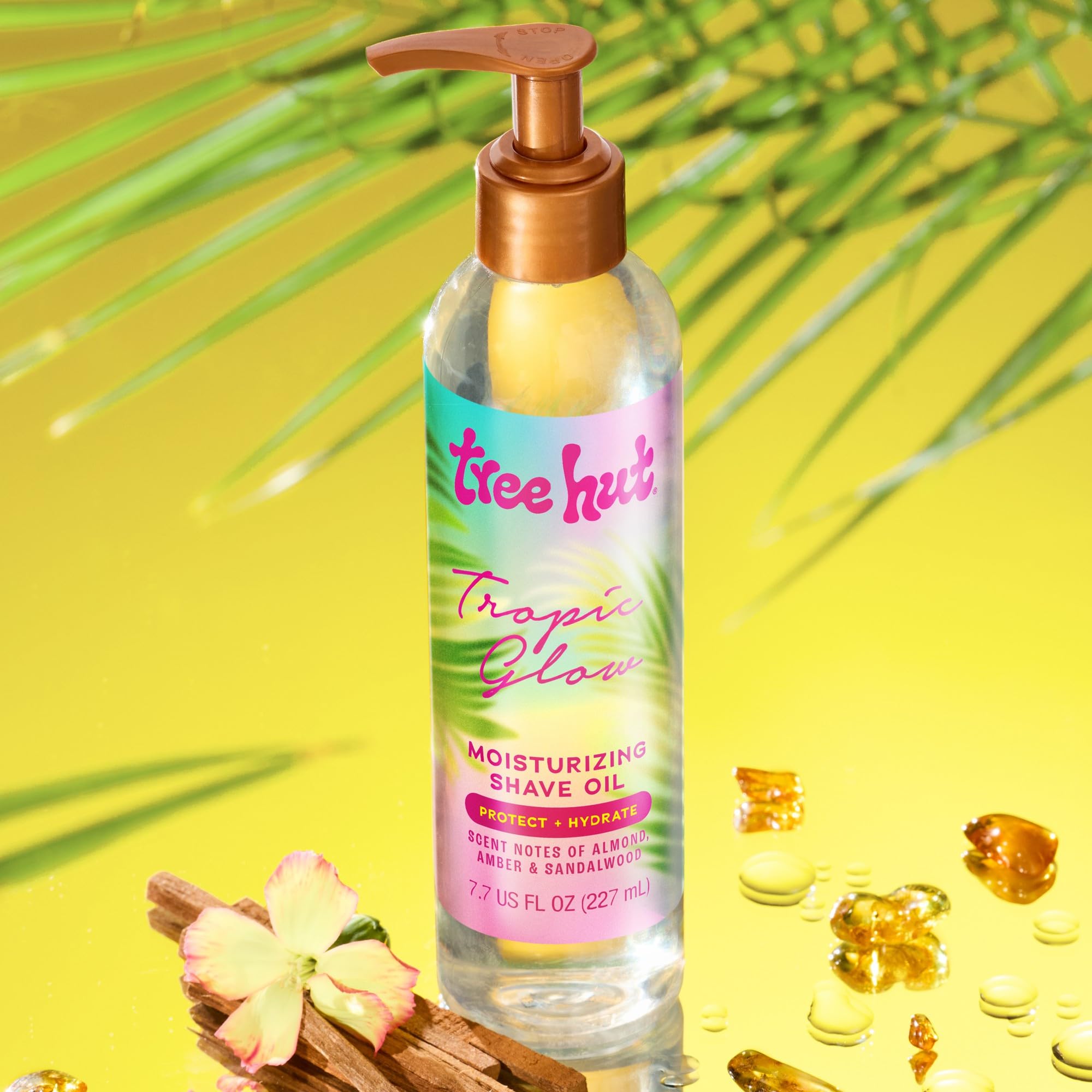 Say goodbye to stubble, bumps, and irritation and hello to your smoothest skin yet with Tree Hut Tropic Glow Moisturizing Shave Oil. This luxurious shave oil features Tree Hut's signature Tropic Glow scent, loved for its warm, radiant notes of almond, golden amber, and Australian sandalwood. The innovative gel-to-oil formula transforms during application, creating a cushiony layer that glides effortlessly for a closer, smoother shave. Ideal for all skin types, especially those prone to razor bumps and sensitivity, this shave oil helps reduce friction and improve razor contact while leaving behind a soft, hydrated feel. Enriched with Cupuaçu Butter to support skin elasticity and Pistachio Oil to lock in moisture, this formula nourishes the skin both during and after shaving. The non-slip texture makes it easy to use in or out of the shower, and the scent lingers for a truly refreshing finish. Tropic Glow Moisturizing Shave Oil is more than just part of your shave—it's part of your glow.
