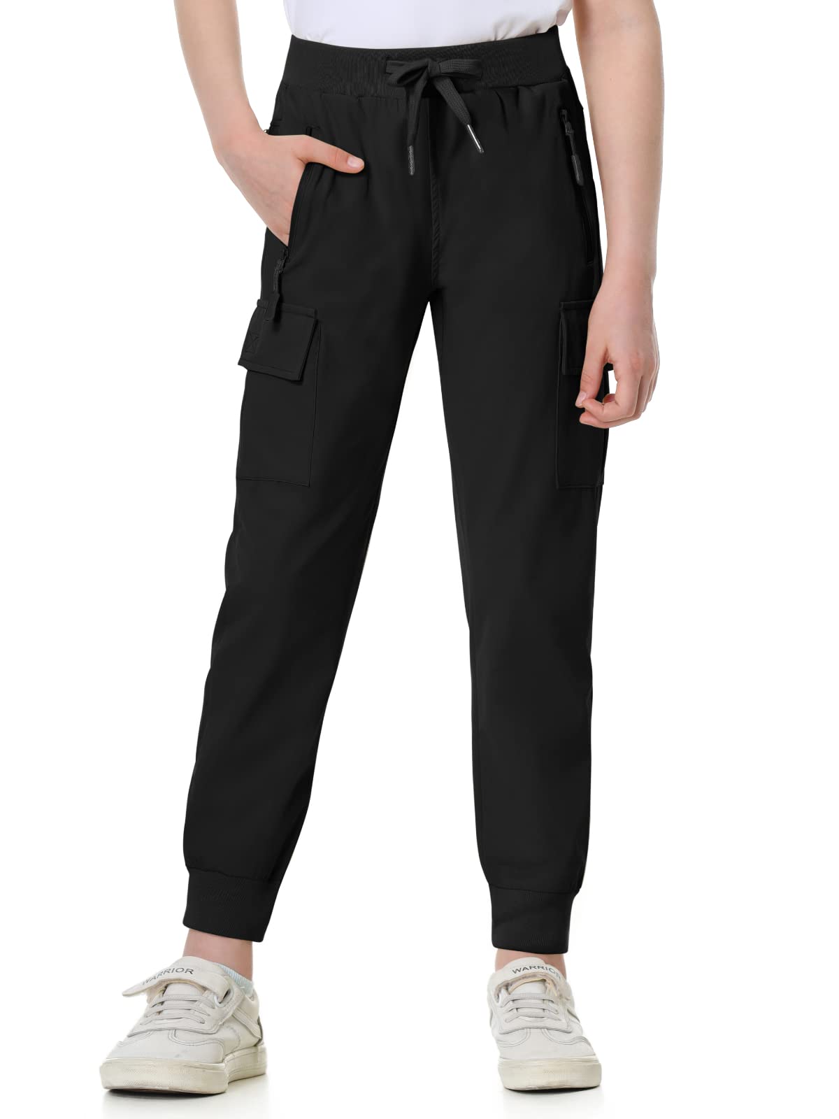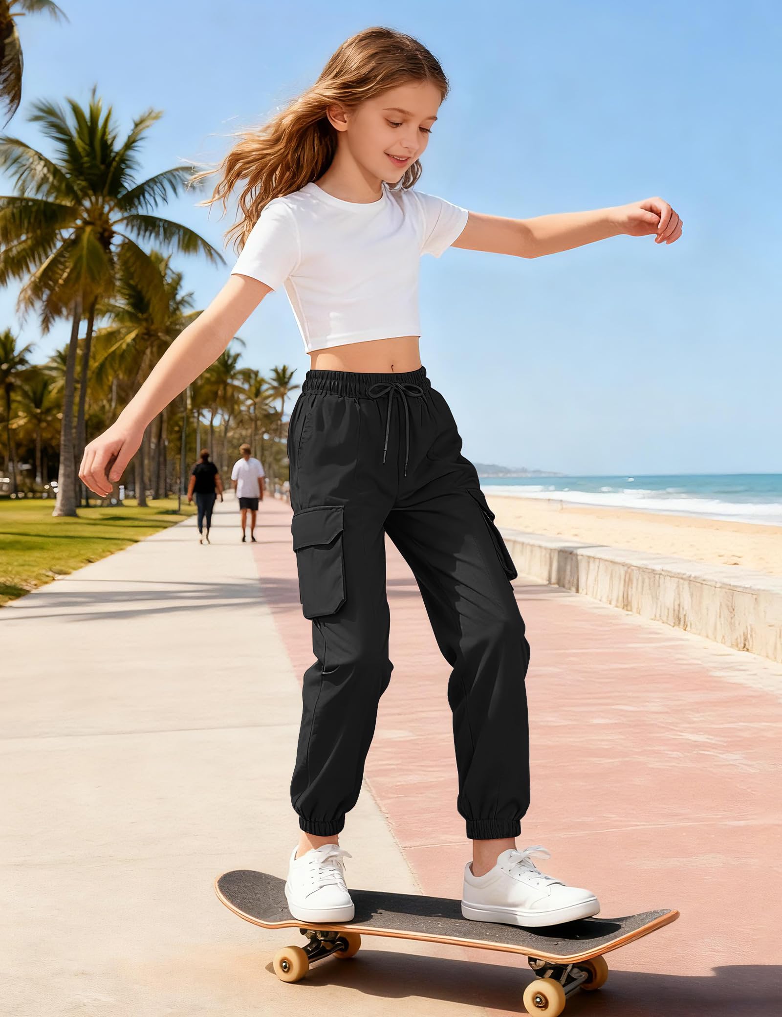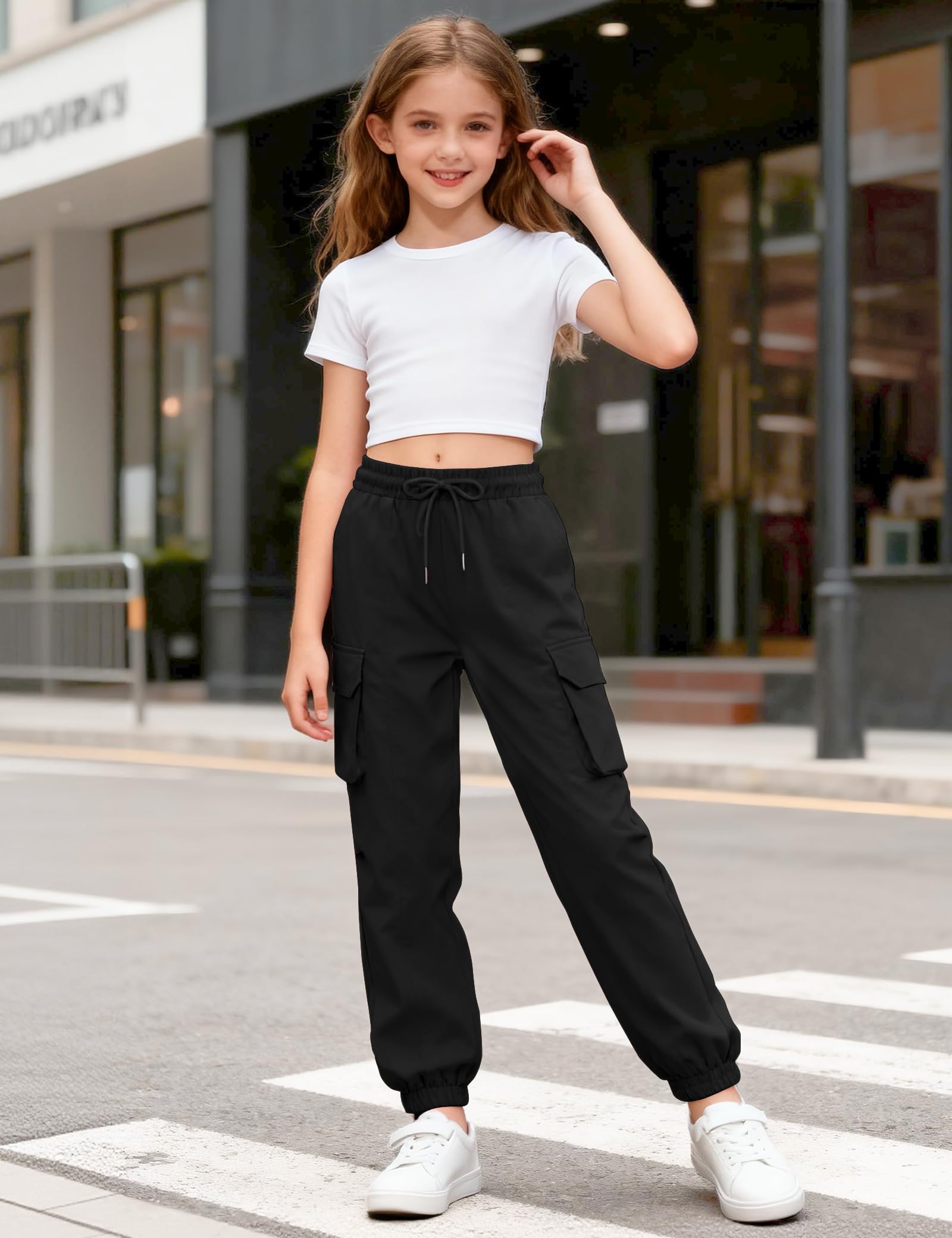 Girls Hiking Pants -- These Girls Cargo Joggers combine the classic cargo style with jogger aesthetics, can be paired with variety of tops like crop top, tank, jackets. Provide black/navy/pink/beige/army green these basic color can meet all the needs of girls ages 7-14 years
