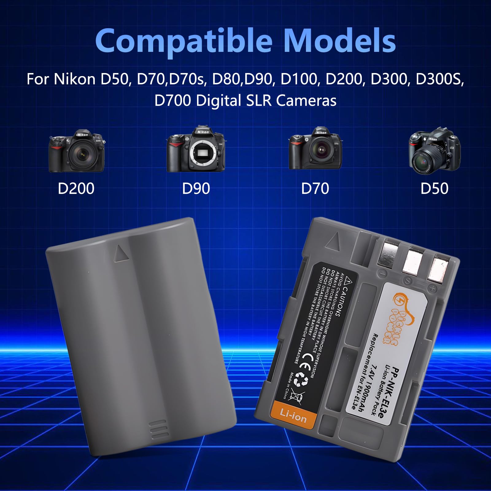 Wide Compatibility: Replacement for Nikon EN-EL3e EN-EL3 EN-EL3a Battery, Fully compatible with Nikon D50, D70, D70s, D80, D90, D100, D200, D300, D300S, D700 digital SLR cameras