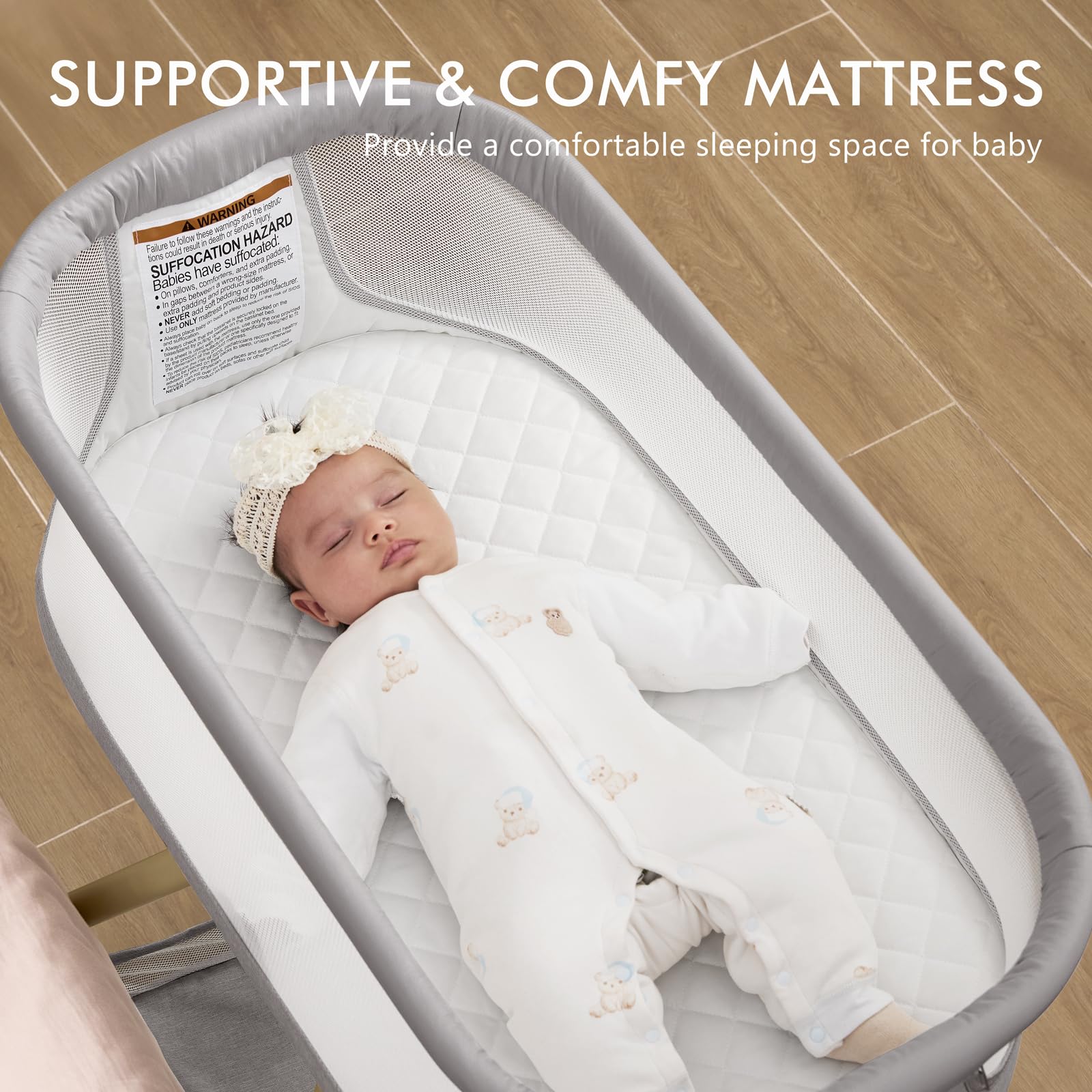 Safe and Secure: The baby bassinet bedside sleeper ensures your baby is within reach and easily accessible, while the sturdy frame keeps them secure.