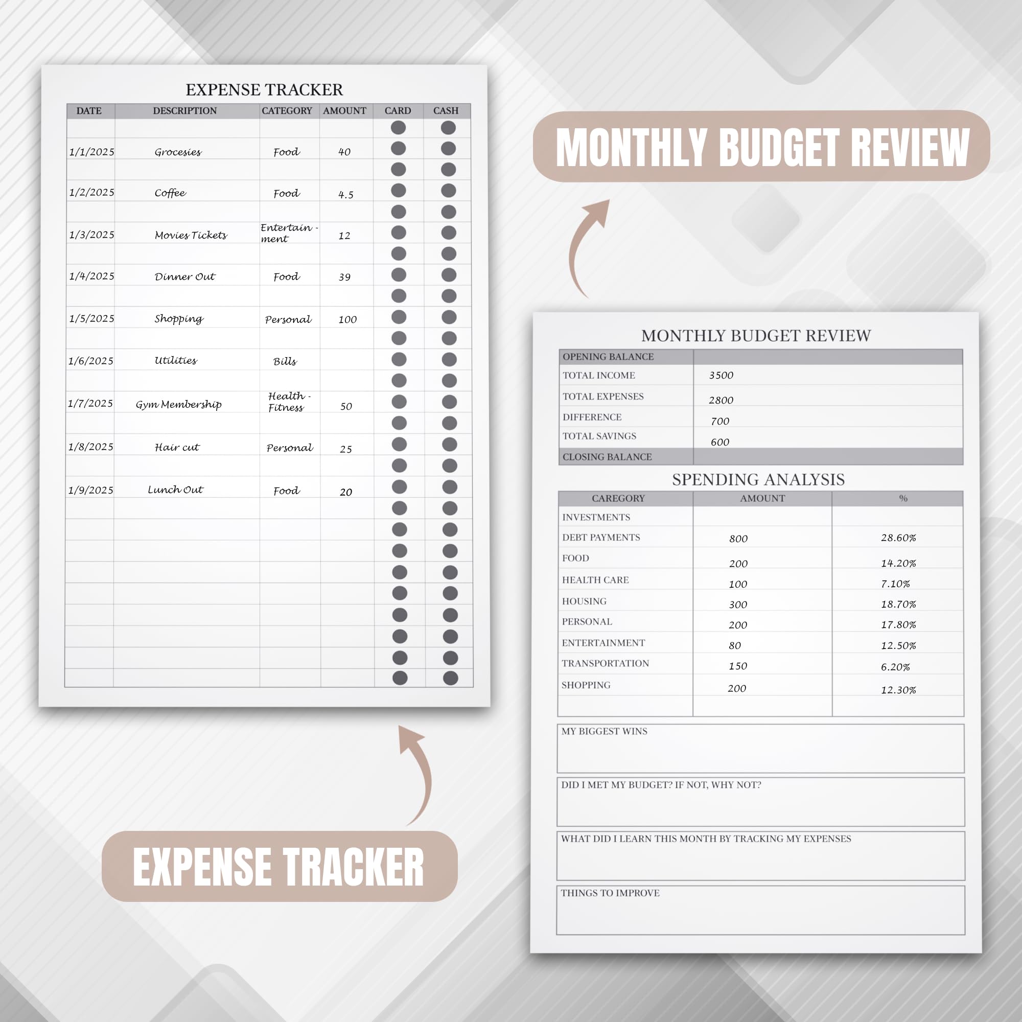 Debt Payoff & Financial Goals Planner – Set goals, monitor progress, and celebrate wins with guided layouts that make budgeting simple and satisfying. Our monthly finance planner is great for beginners and budget pros alike.