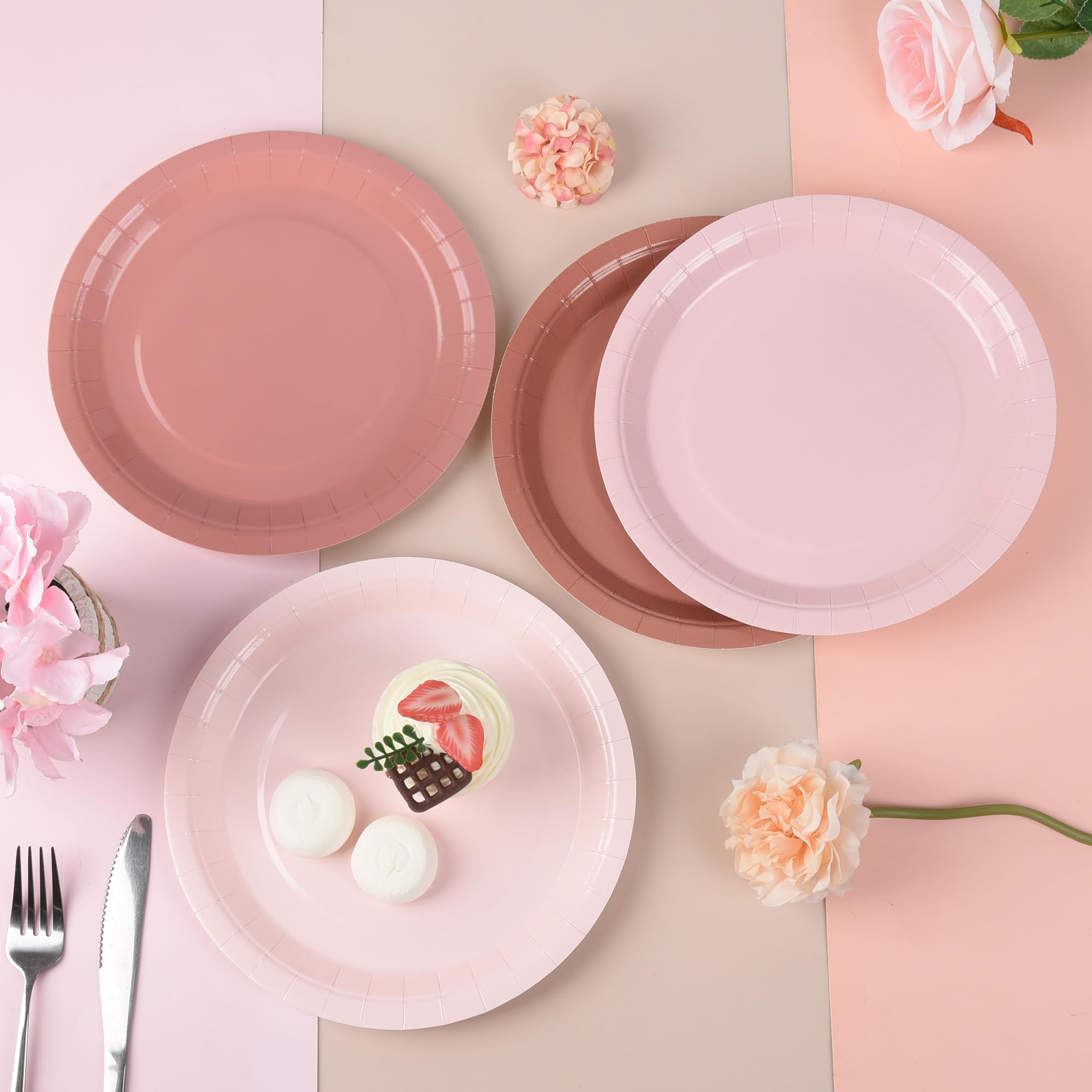 Pink Decorations: These dusty pink paper plates feature cute and decorative pale pink, light pink, hot pink, and blush pink colors that adds a cheerful touch to your table setting, perfect for any celebration or event where a pop of color is needed, making your festivities more memorable.
