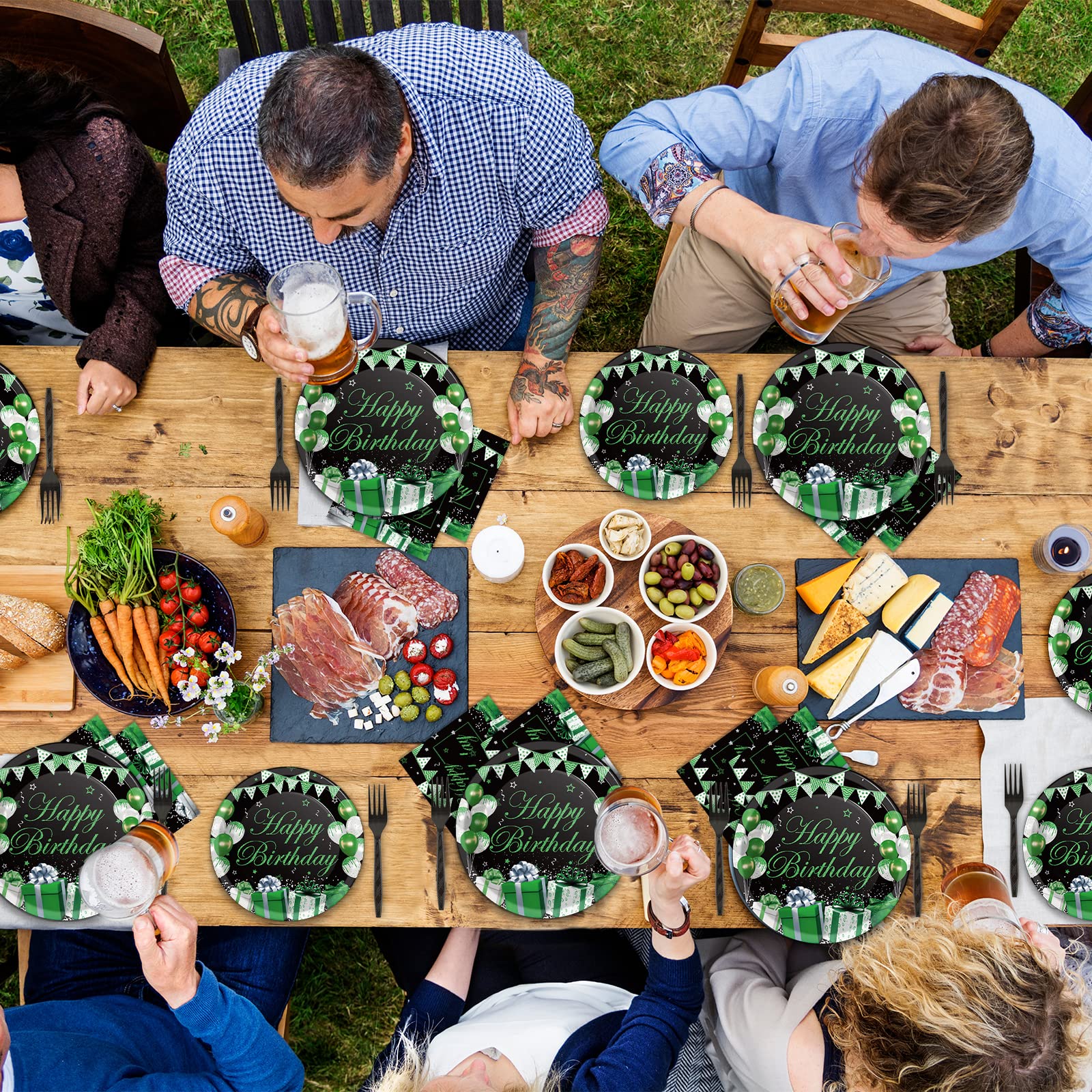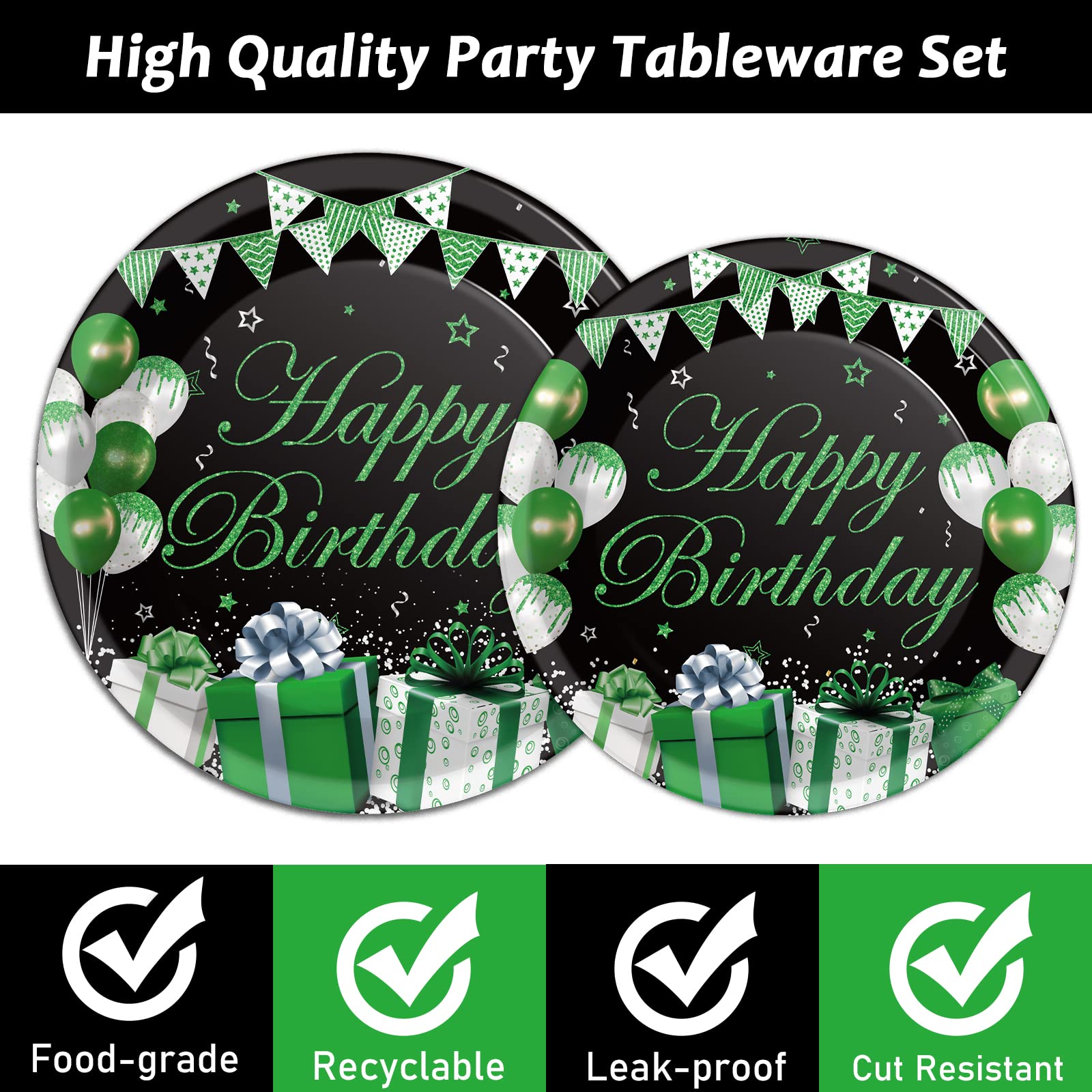 【Premium Material】All of our green and black theme plates and napkins are made of quality paper, non-toxic, no smell, heat-resistant and durable. The pattern and color are well-printed and fade-resistant to provide you with a party that full of happy birthday atmosphere.