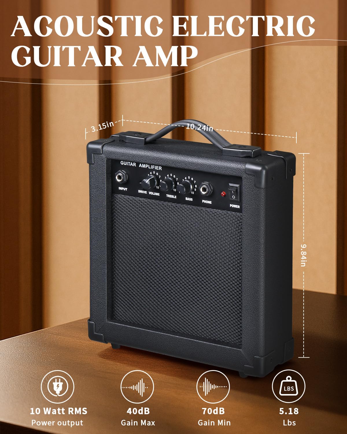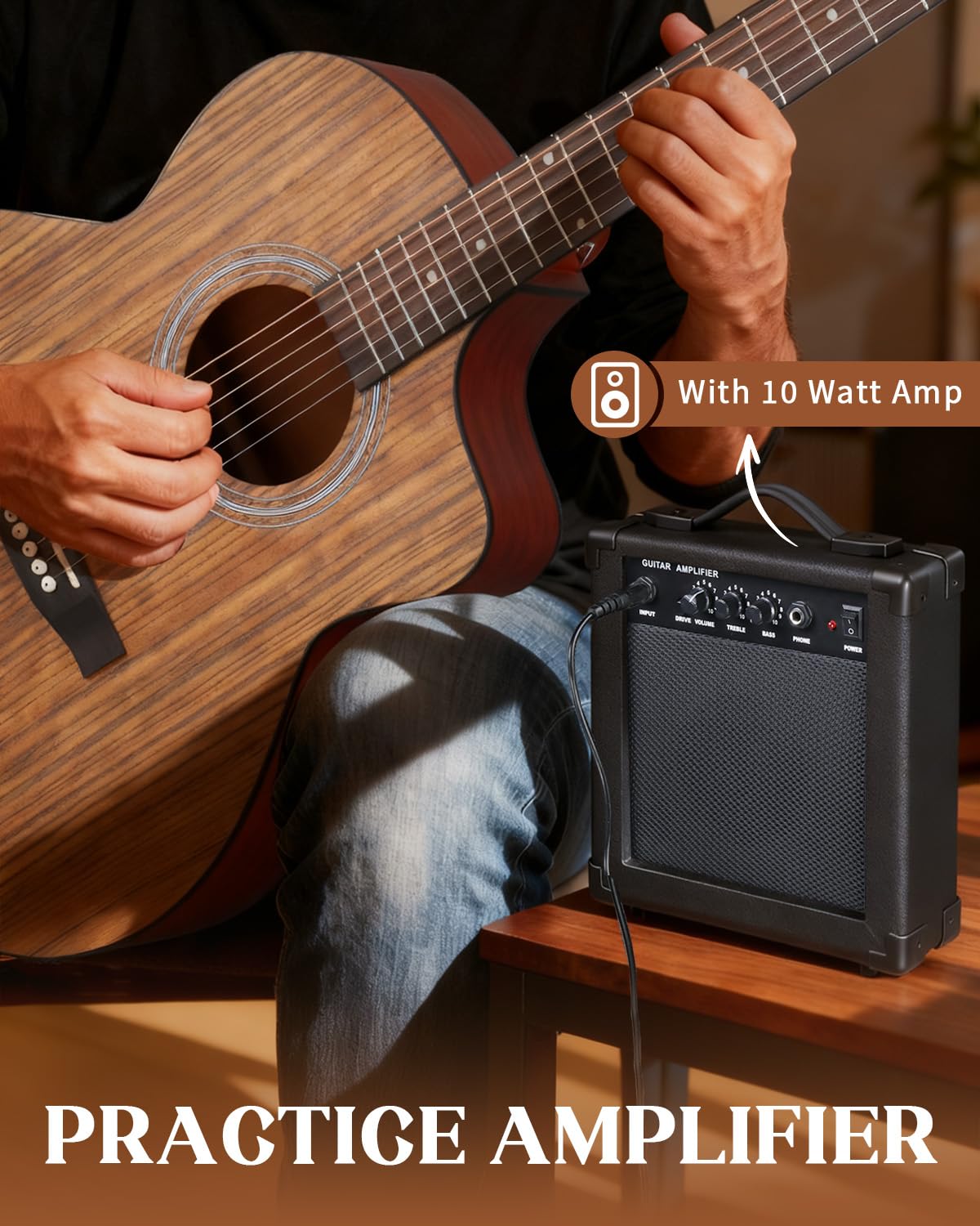 【All-in-One Starter Package, Ready to Play Upon Arrival】This complete guitar kit includes everything you need to start playing right out of the box. You get the 41-inch cutaway guitar, a 15-watt amplifier, a bag, a comfortable strap, multiple picks, and a handy capo