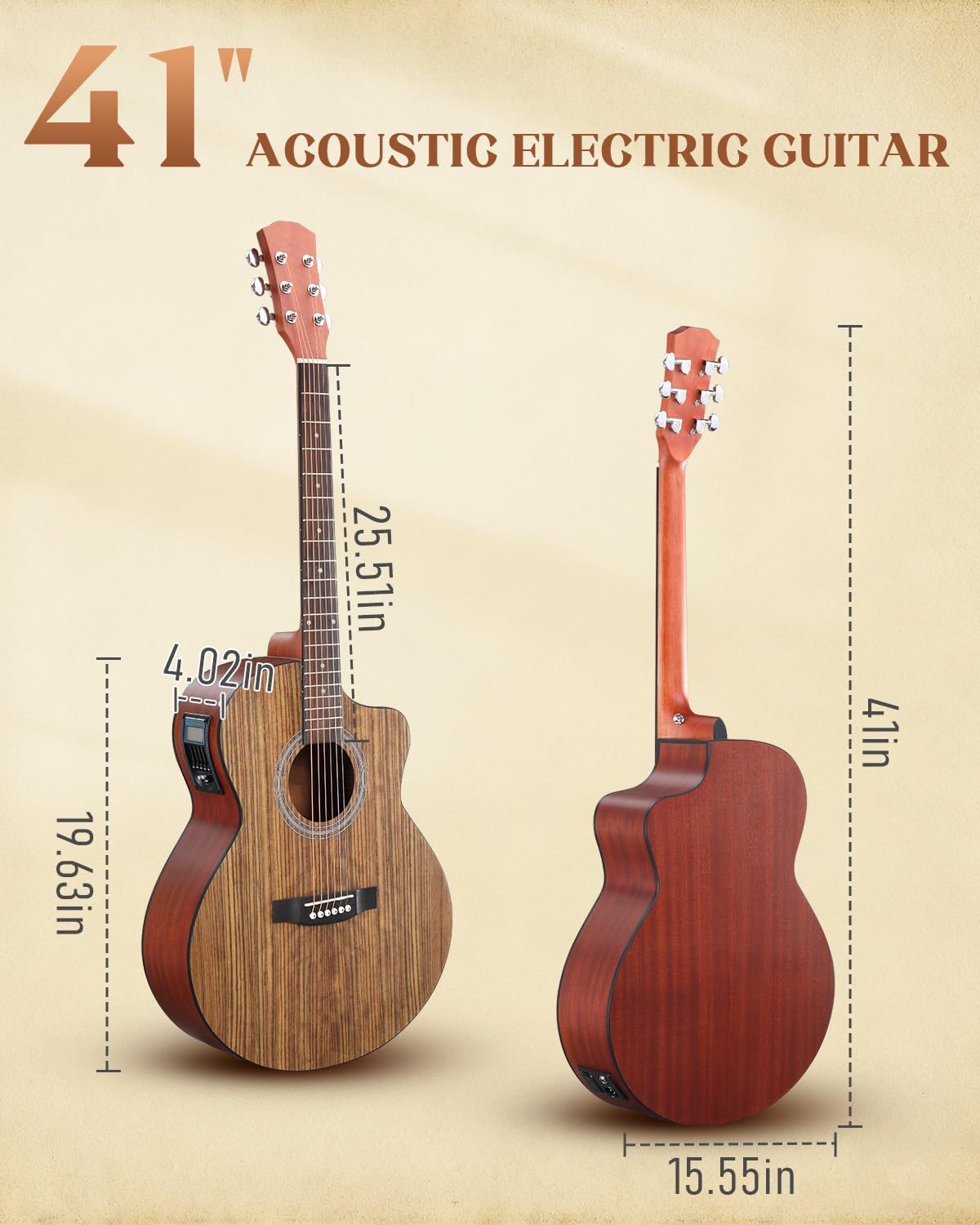 【Premium Sound with Electric & Acoustic Play Options】Experience rich and clear sound from the basswood body. The cutaway design allows easy access to higher frets. Equipped with built-in EQ, you can plug into the included 15W amp for louder sound and personal practice, or play it acoustically anywhere