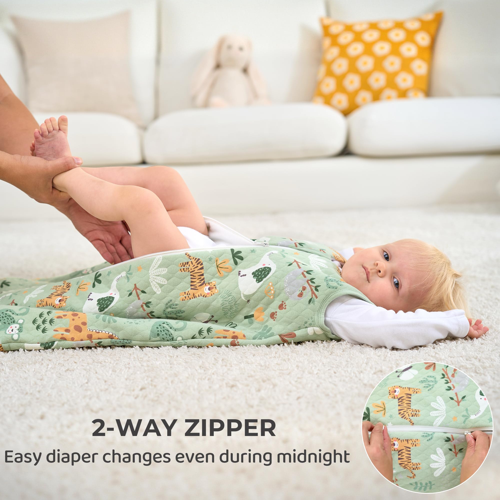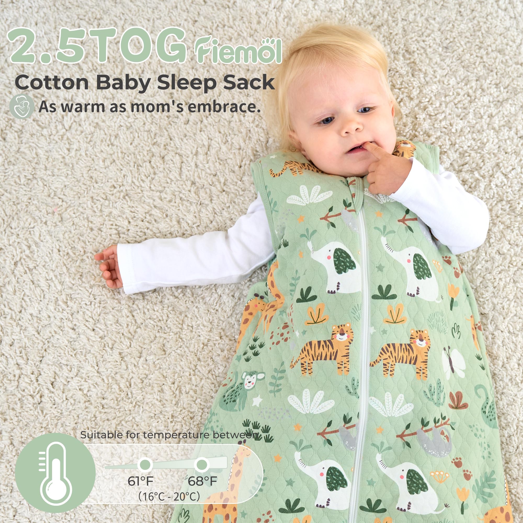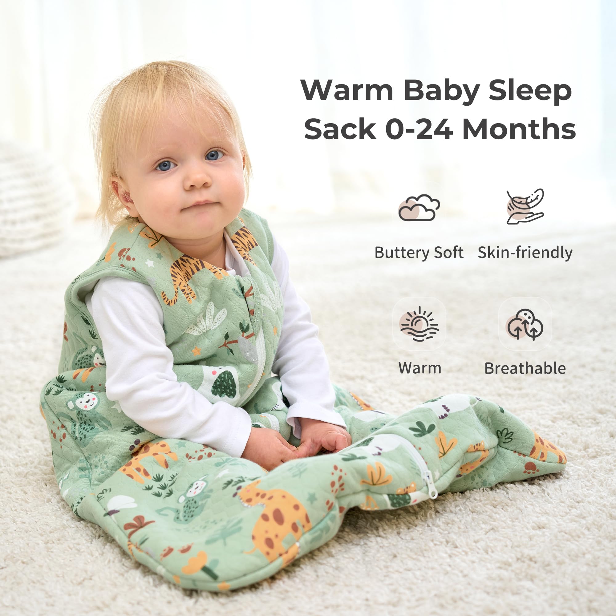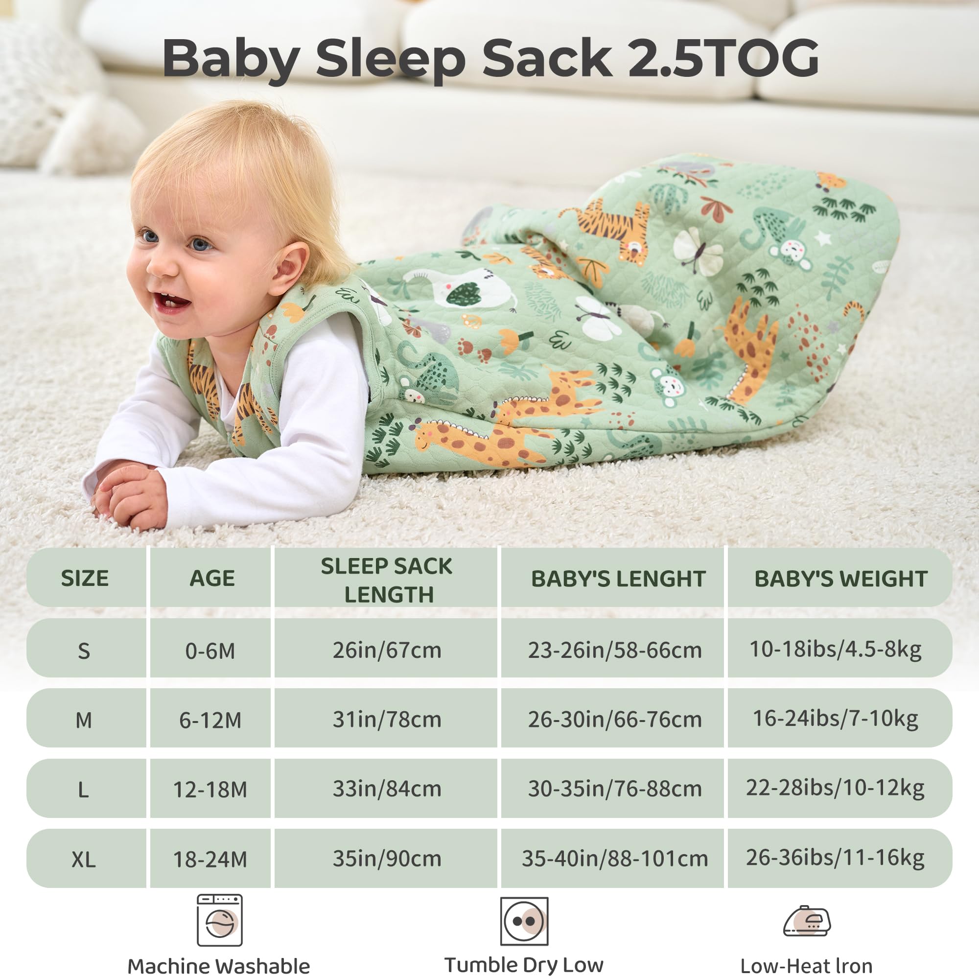 【Warm&Breathable】The 2.5 tog baby sleep sack 0-3 months and 3-6 months is delicately made of 100% cotton at outer layer, which could quite well fit for air flow at every winter night. With its premium cotton inner layer and microfiber filling, your baby would be prioritized by a sleep in mom's arms. A sound sleep for your baby is indispensible for a family.