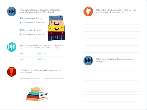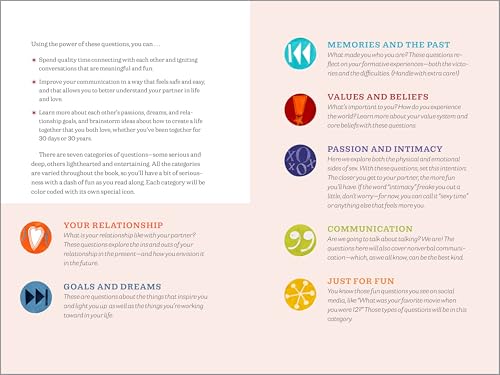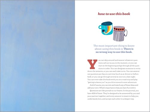 Spark conversation and grow closer with these 400 questions for couples. Having fun together is a paramount part of a strong and happy relationship. This book of questions is full of insightful and revealing topics, so you and your partner can connect and have a blast discovering what makes each of you unique and a great match for each other. Go beyond other relationship books for couples with: ALL KINDS OF CONVERSATIONS: Discuss a variety of questions, from your favorite movies and meals to your most important memories and feelings about intimacy. NO PRESSURE: The flexible format means you can tackle these questions in any order, whenever you have the time. Answer a whole bunch at once, or once in a blue moon―it's up to you. QUESTIONS FOR COUPLES AT EVERY STAGE: Stay connected and show you care, whether you're newly dating, long-distance, or a longtime couple just looking to spice things up. Discover more about yourself, your partner, and your relationship with these fun and meaningful questions for couples!