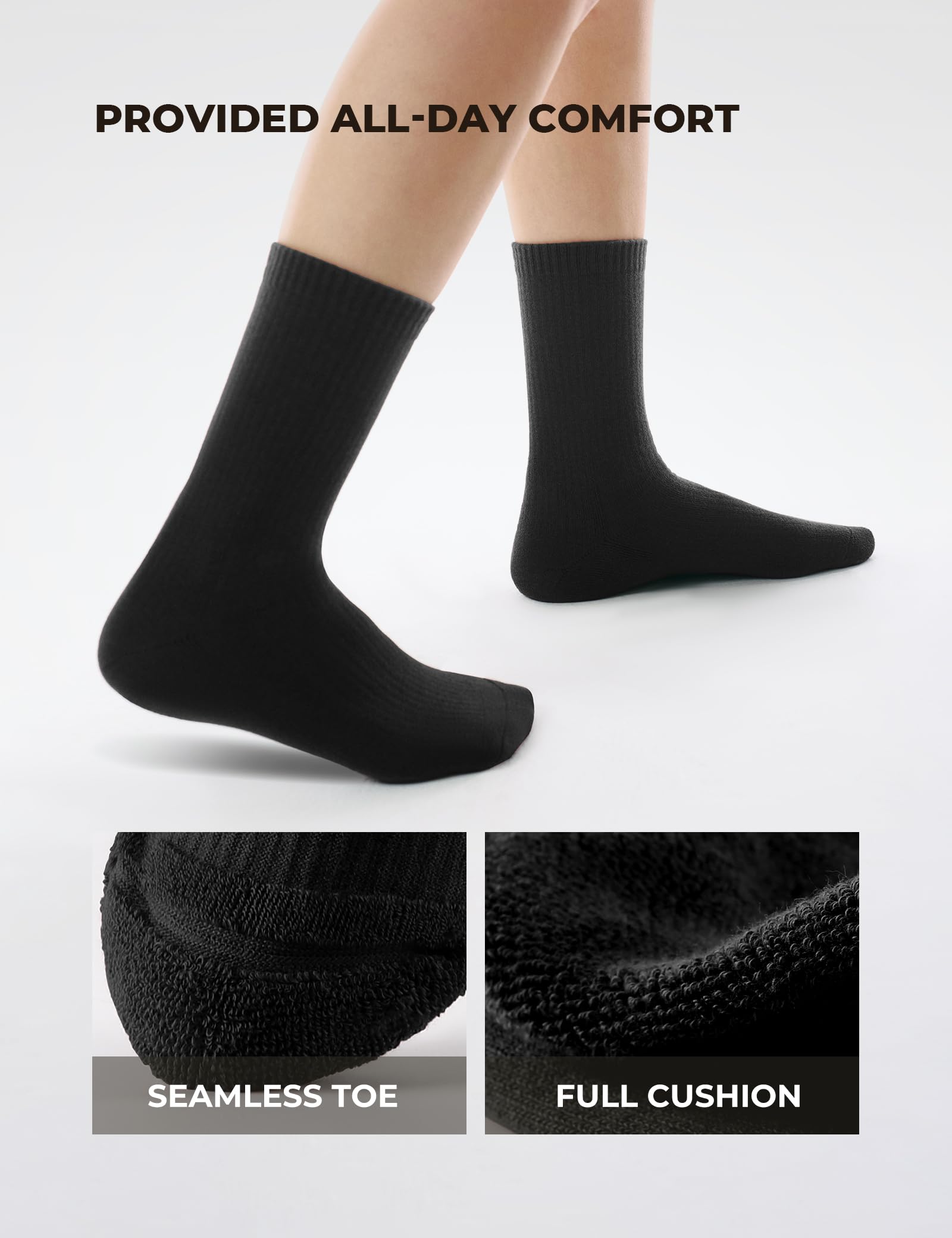 Premium Fabric: Offering the perfect balance of thickness and breathability, our crew socks are made of combed cotton for superior softness, resilience, and durability. The moisture-wicking fabric keeps feet dry and comfortable all day long.