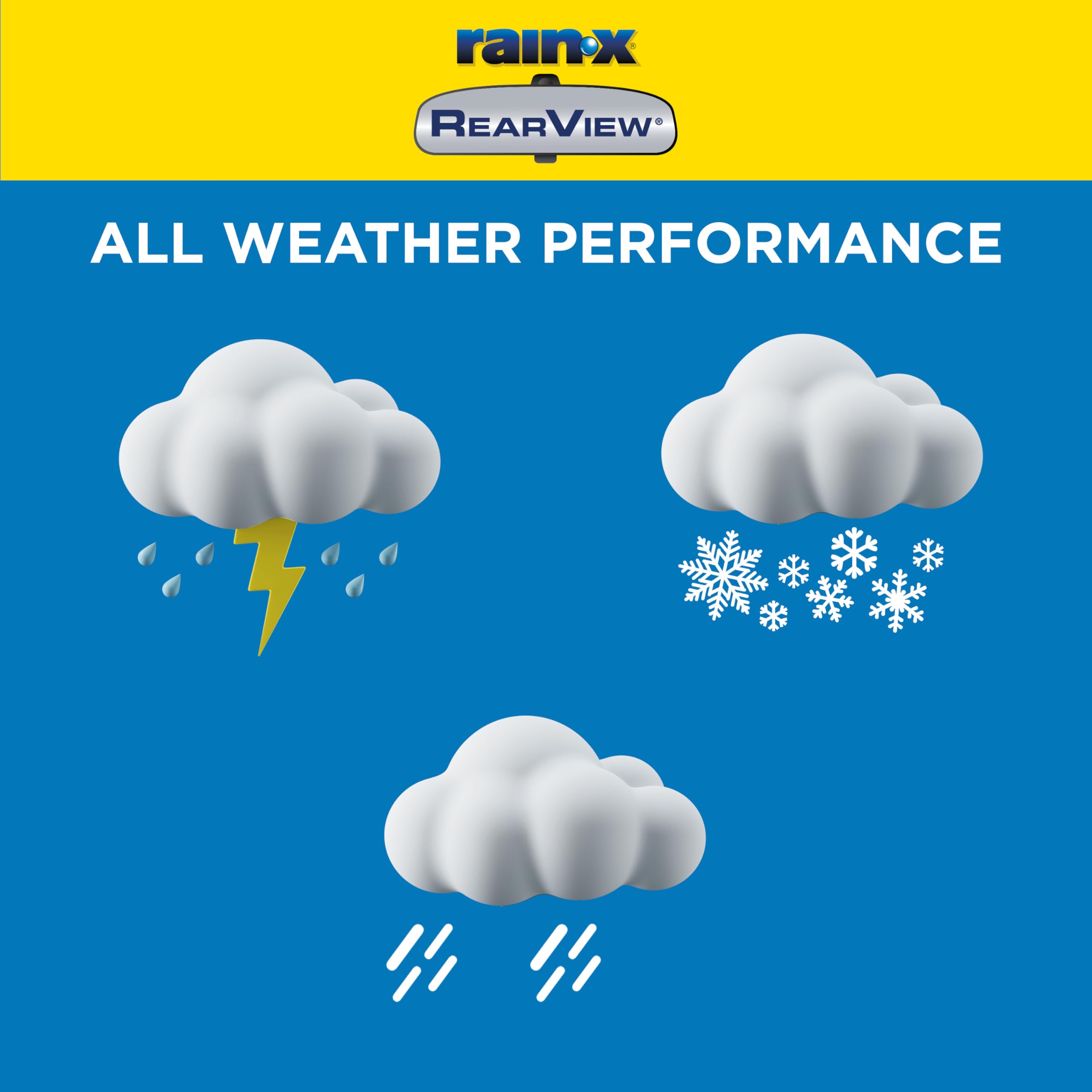 Upgrade your rear visibility with the Rain-X RearView Wiper Blade, equipped with an interchangeable adapter for quick and easy installation. Engineered for long-lasting performance, this OE replacement rear wiper blade delivers all-weather reliability and a factory-quality fit. It installs in seconds and is designed to match original equipment standards for a secure, precise connection. The natural rubber squeegee resists cracking, tearing, and wear from heat, cold, washer fluid, and road salt—ensuring clear, streak-free wiping in any season. Whether you're backing out in the rain or navigating through winter slush, the Rain-X RearView Wiper Blade provides the rearview clarity you need to drive with confidence. Don’t stop at your front wipers—refresh your full view and stay safe from every angle with trusted Rain-X quality, durable performance, and everyday value in one easy upgrade.