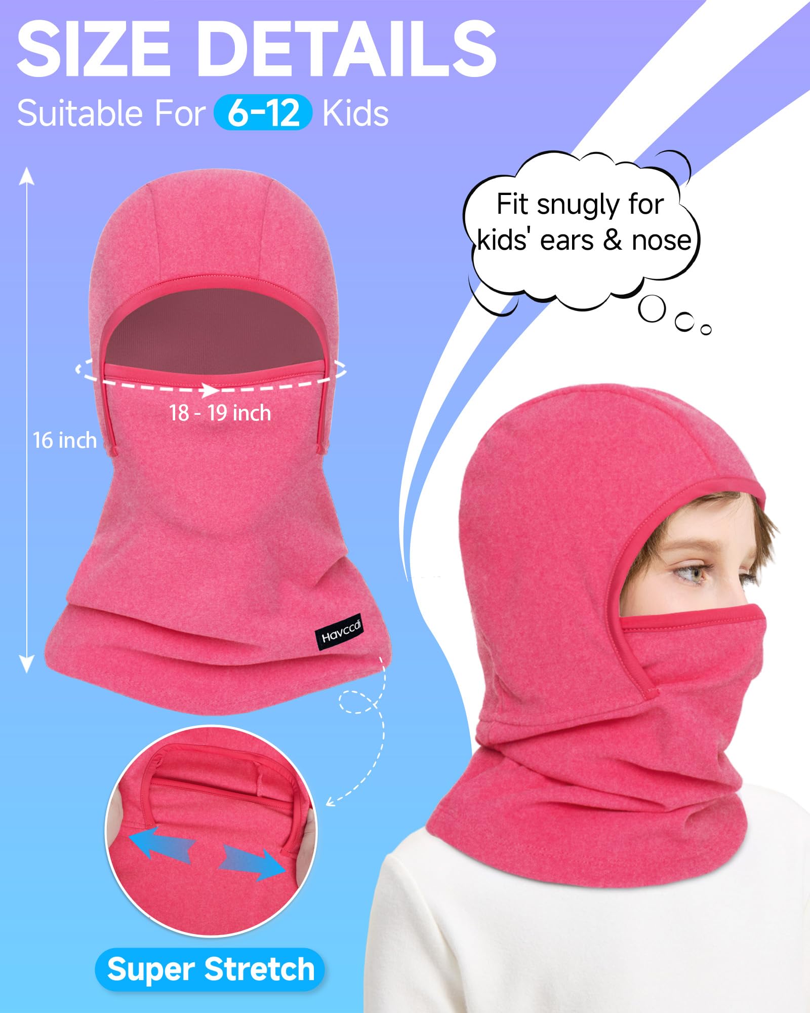 FULL COVERAGE WARMTH:Ours kids ski mask comes with lengthened bottom and features premium fleece fabric, offering exceptional warmth and wind resistance, 360° protecting your child against chilly winds and dust.