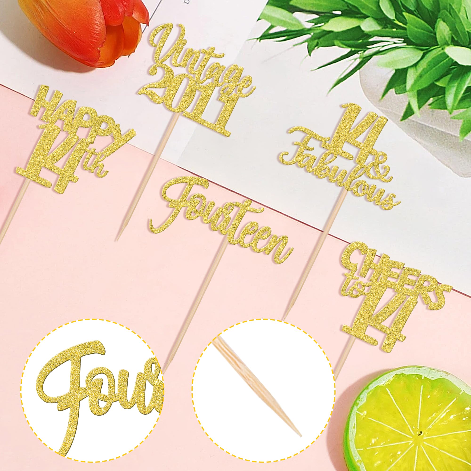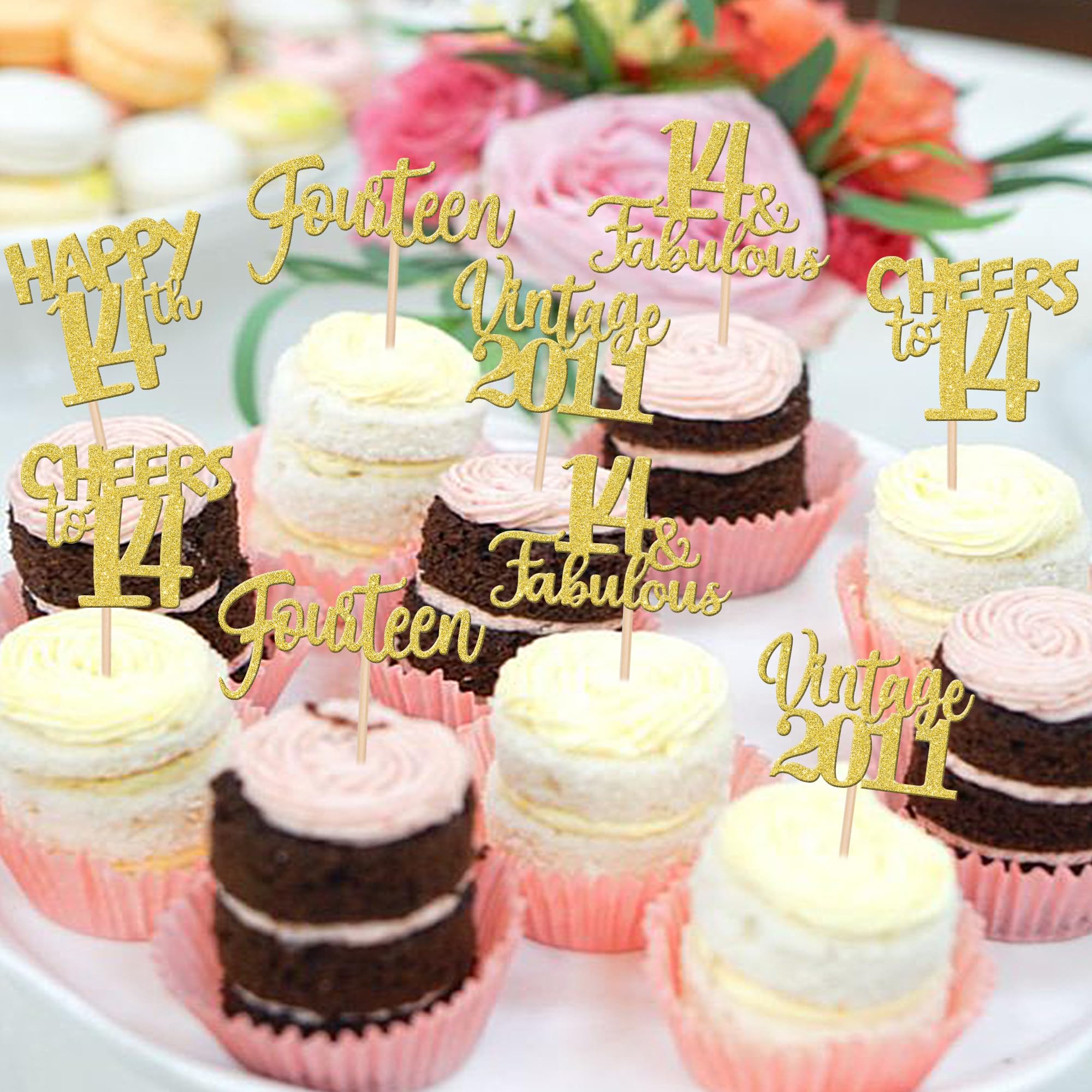 Wide Usages ! These vintage 2011 cupcake toppers are perfect for vintage 2011 theme party, 14th birthday theme party, 14th wedding anniversary theme party,cheers to 14 years theme party cupcake decorations, they can make your cupcake more attractive and bring the fun to your party.You can also apply them for ice cream, fruits, cookies and other desserts.