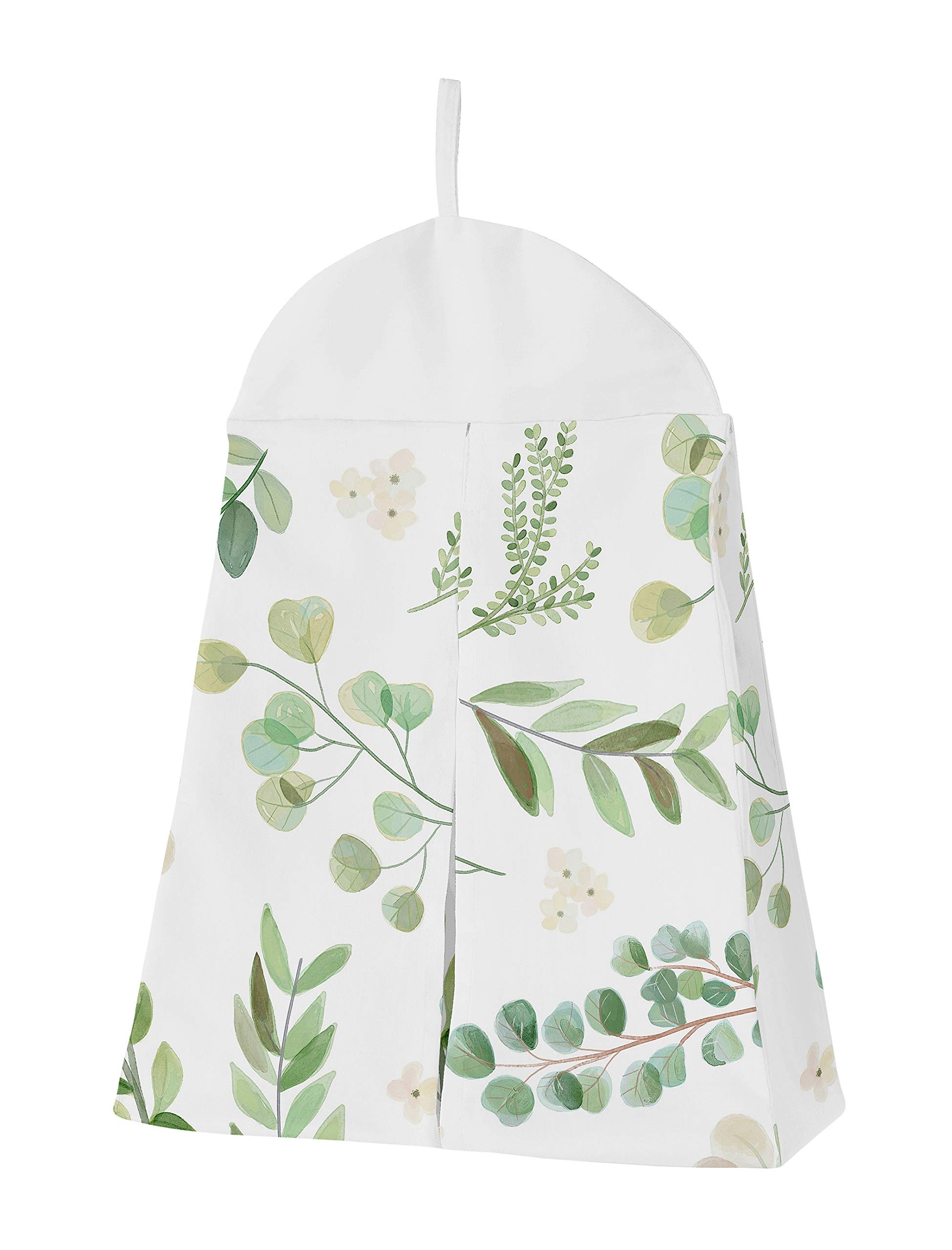 Dimensions: Crib Blanket: 45 in. x 36 in., Fitted Crib Sheet: 52 in. x 28 in. x 8 in. pocket, Crib Skirt: 52 in. x 28 in. x 15 in. Drop, Diaper stacker: 15 in. x 20 in. x 6 in.