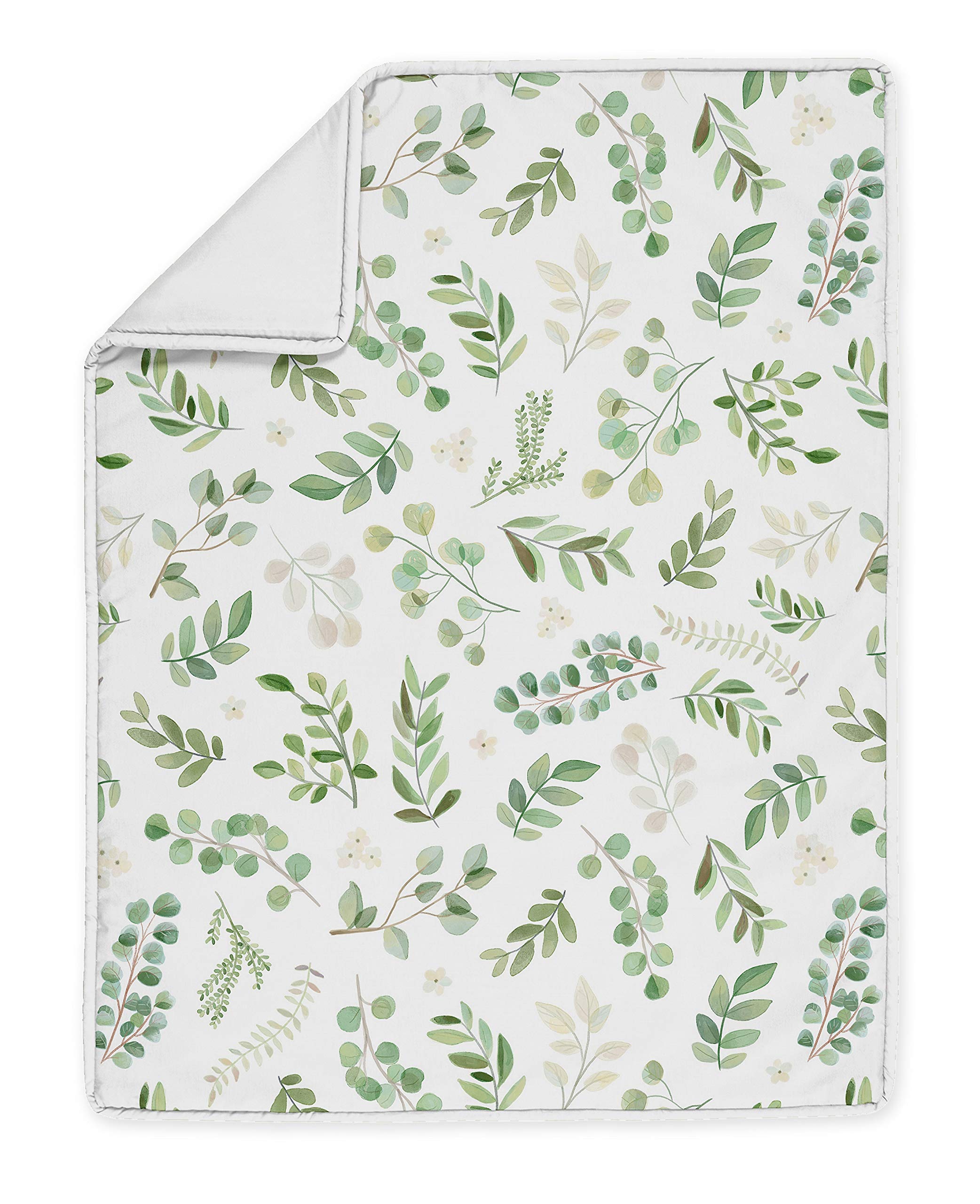 This set boasts a hand painted watercolor leaf print combined with solid fabric.
