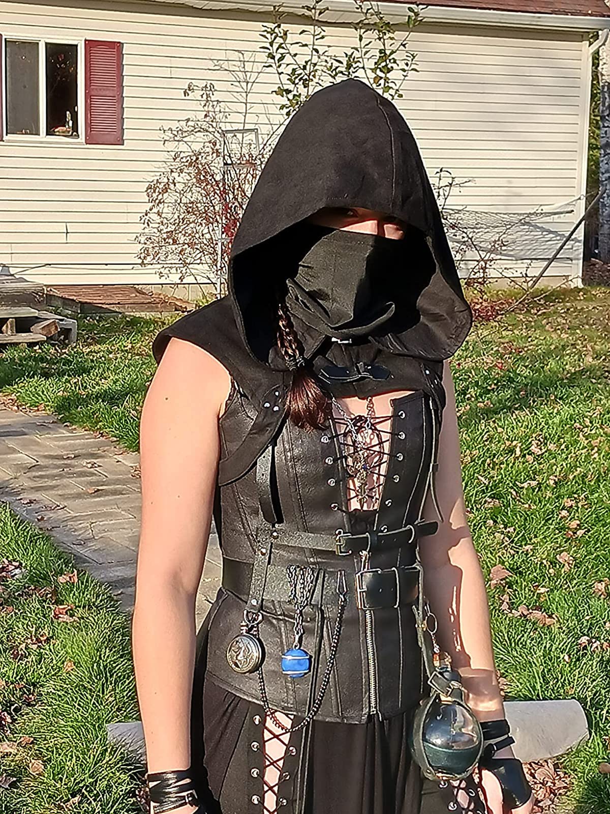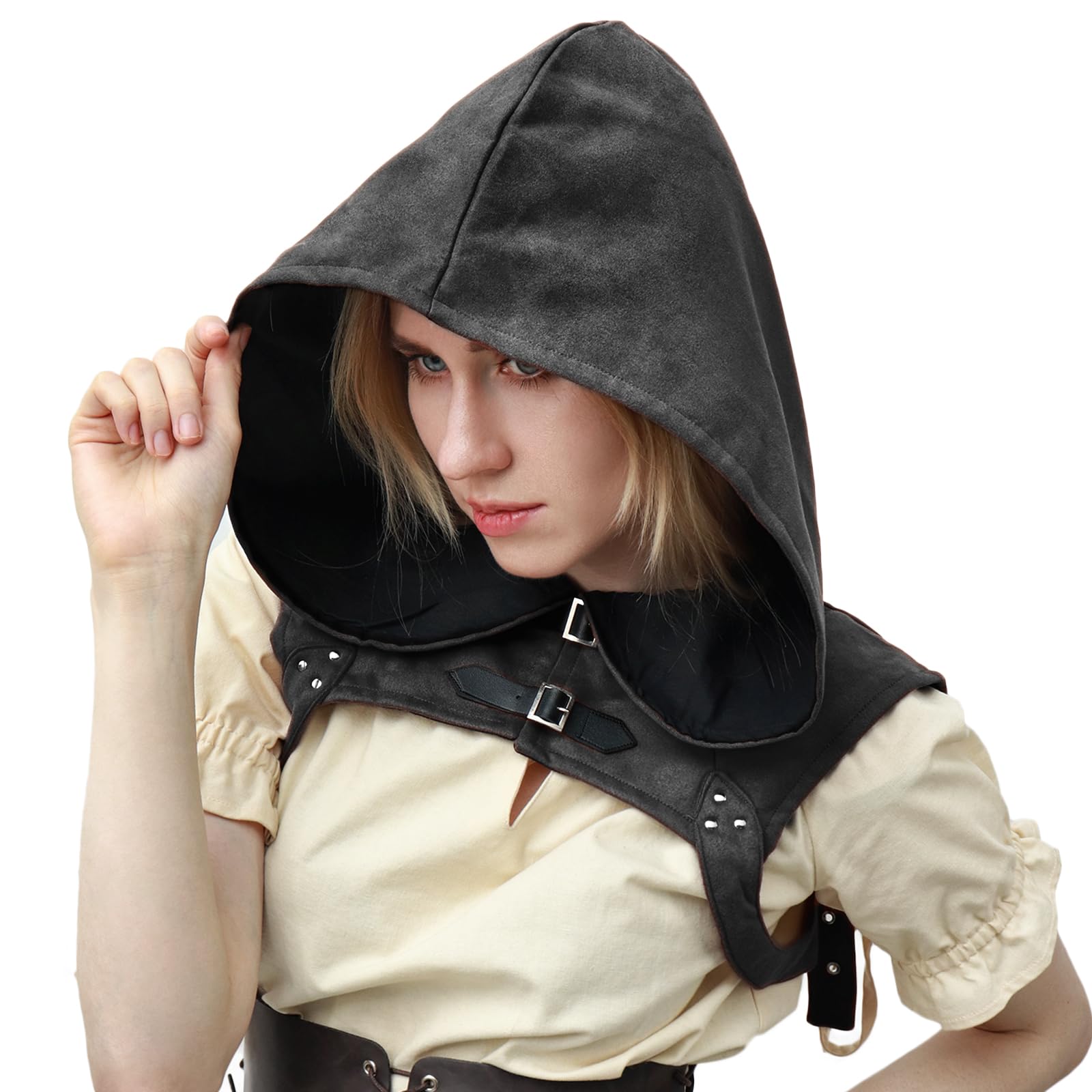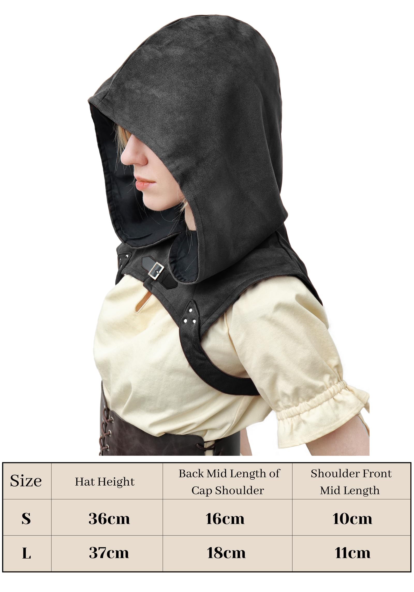 Easy to Wear: This medieval cloak cap is fixed with adjustable length straps and buttons. This design meant that the medieval hood would not be easy to slip off, and the button design makes the cloak more cool and fashion