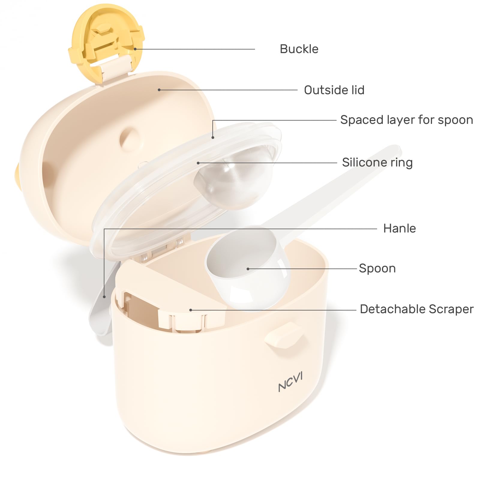 【Milk Powder Dispenser】The NCVI baby formula container is made of high food-grade PP plastic that is BPA-free, environmentally friendly, suitable for moist- heat and freezer safe as well. This milk dispenser for baby formula has two cute horns that are made from TPE soft material, which is round, soft and safe