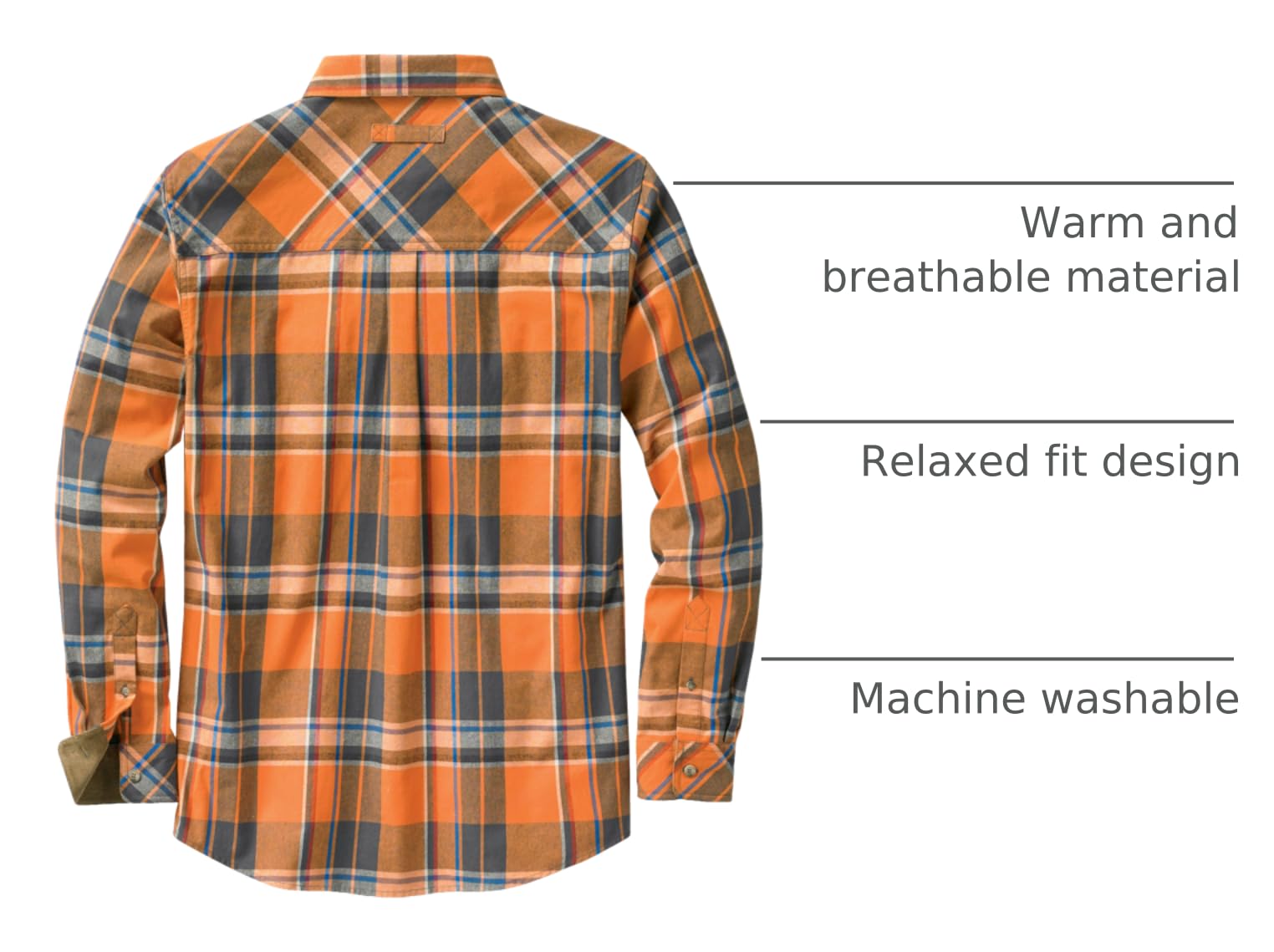 CASUAL FIT: Our Buck Camp Flannel has a relaxed fit for more freedom of movement. If between sizes, refer to our size chart and consider sizing down