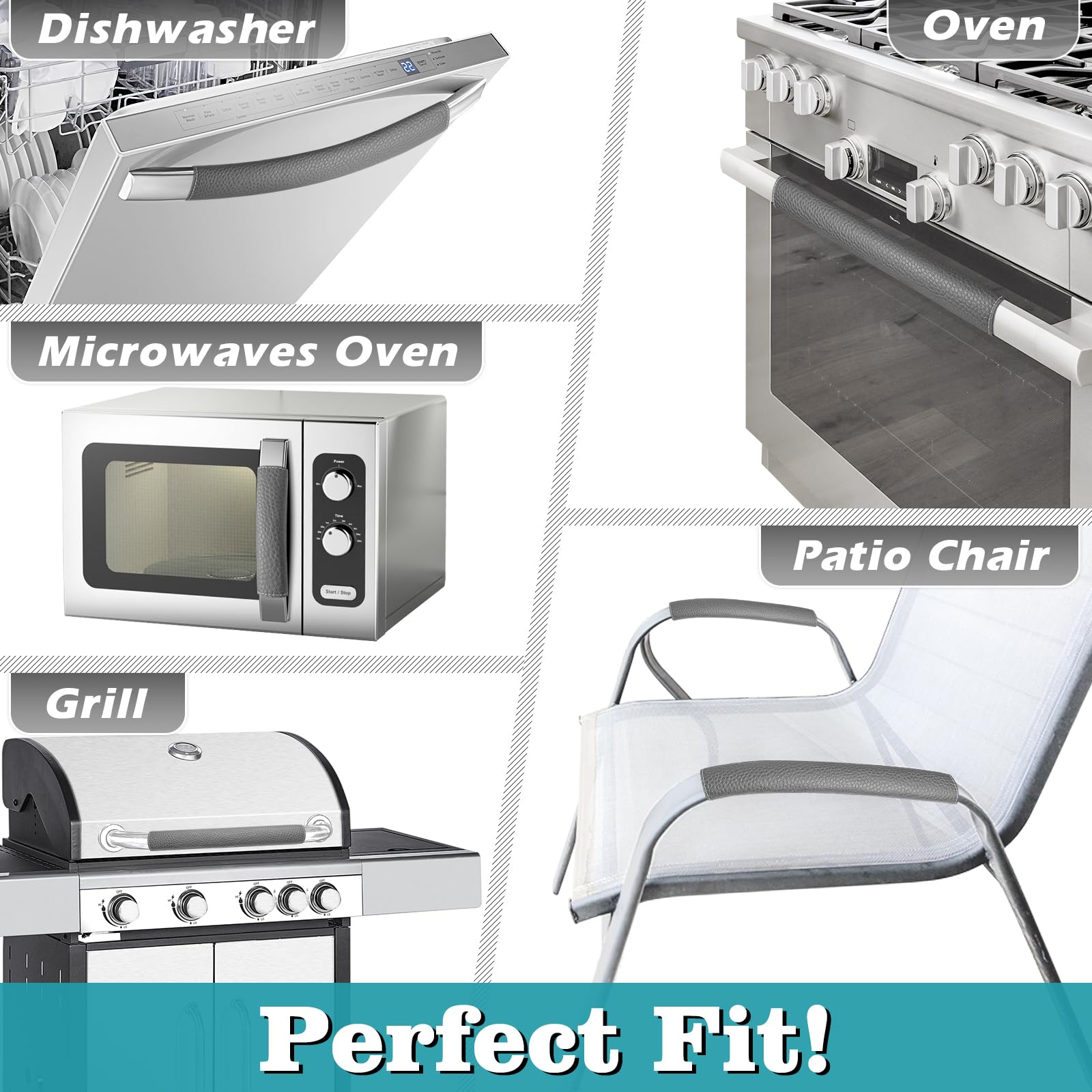 【ADJUSTABLE VELCRO DESIGN】 - Means you can stick the Velcro strip anywhere on the back, so please don't worry about the width! The handle covers can fit perfectly on the fridge door, freezer door, stove, dishwasher, microwave, kitchen cabinet, bathroom door handle, grill handle and even the armrest of the patio chairs outside.