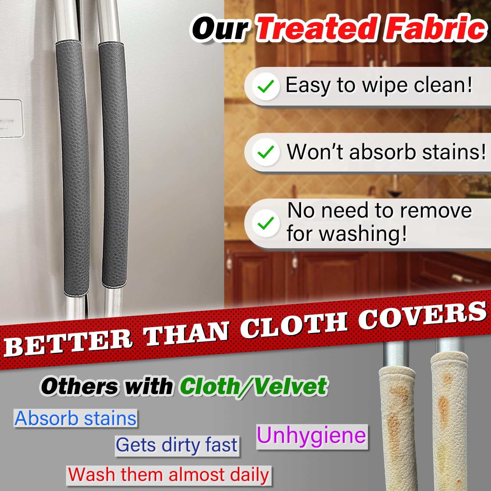 【BETTER THAN CLOTH COVERS】 - Rikzor fridge handle covers are made of treated fabric which doesn’t collect water, dirt, or stains. It can be easily wiped clean, which means you don't need to remove and wash it almost daily like velvet or cloth handle cover.