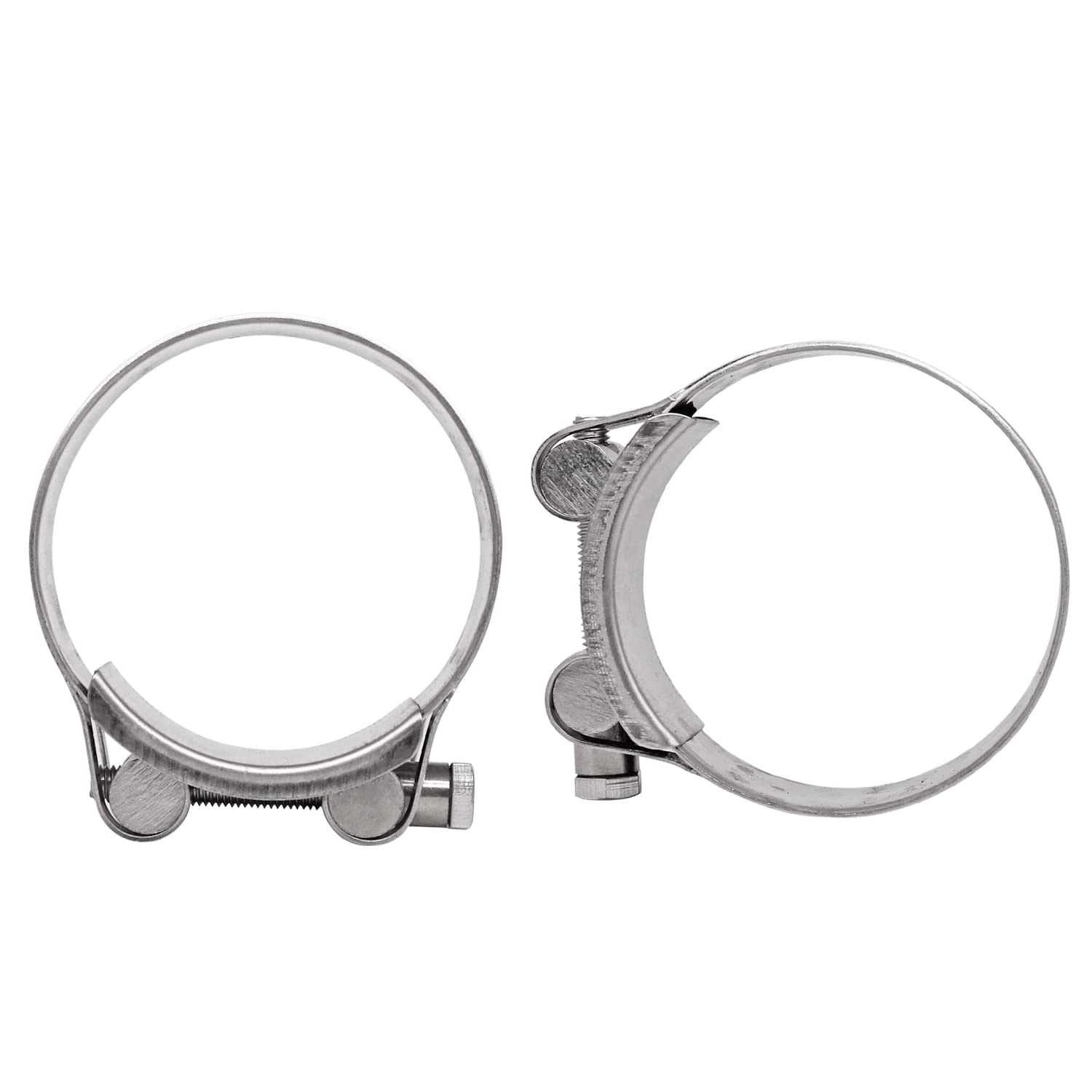 [Clamps Size] T bolt clamp adjustable work range 2.67-2.87"(68mm to 73mm); Width: 0.94"(24mm); Thickness 0.8mm(0.031"); the screw bolt M8*60mm. to save you time, please carefully check and measure your hose OD to fit working range before purchasing our products.