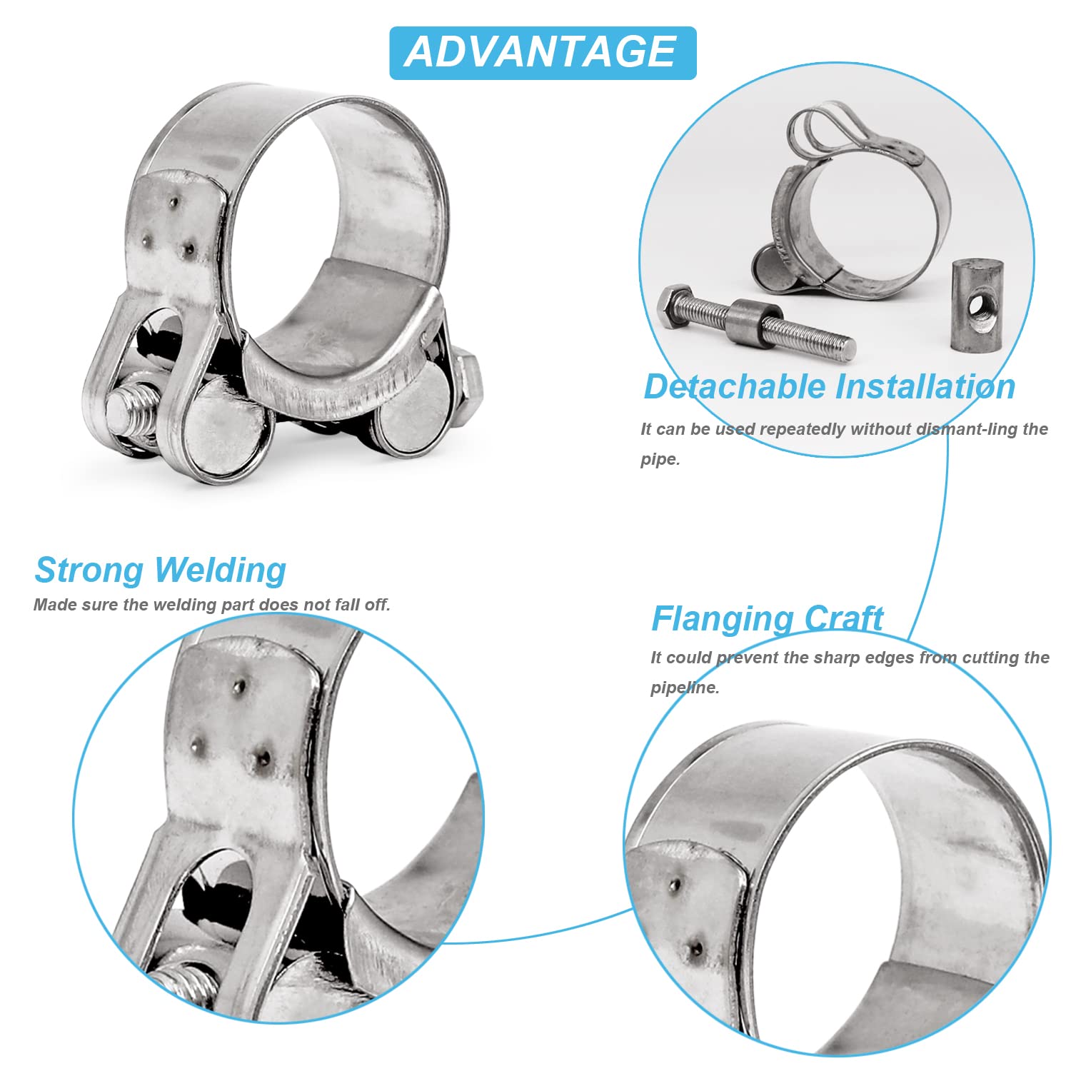 [Easy to Install] Removable installation, silicone hose clamps can be installed without disconnecting the pipe. High hardness and it is not easy to deform, stainless steel screws, large torque.