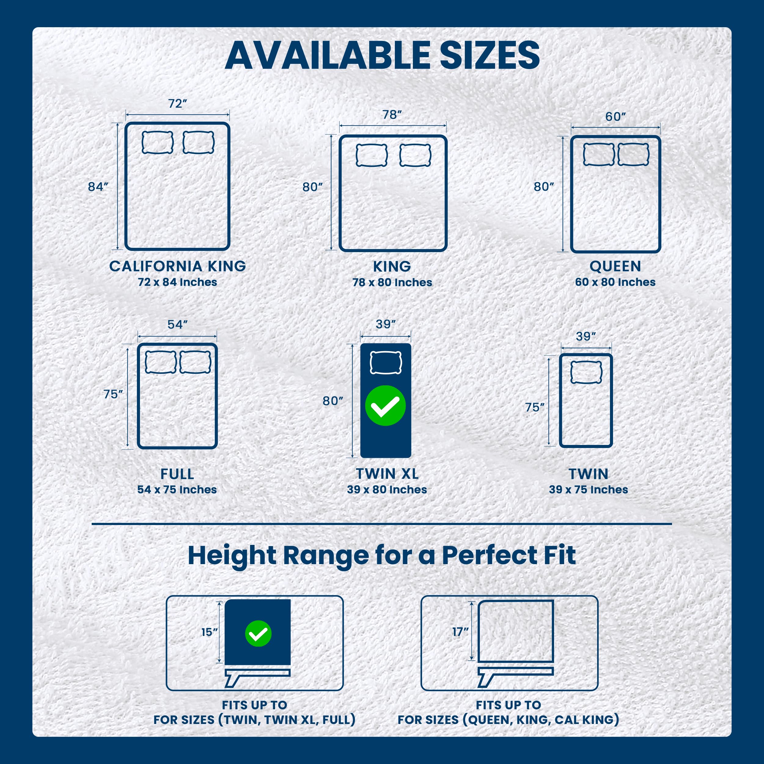 Mattress Protector - Fits Twin XL size mattress perfectly with dimensions 39 inches by 80 inches by 15 inches, featuring professionally turned hems and deep fitted pockets