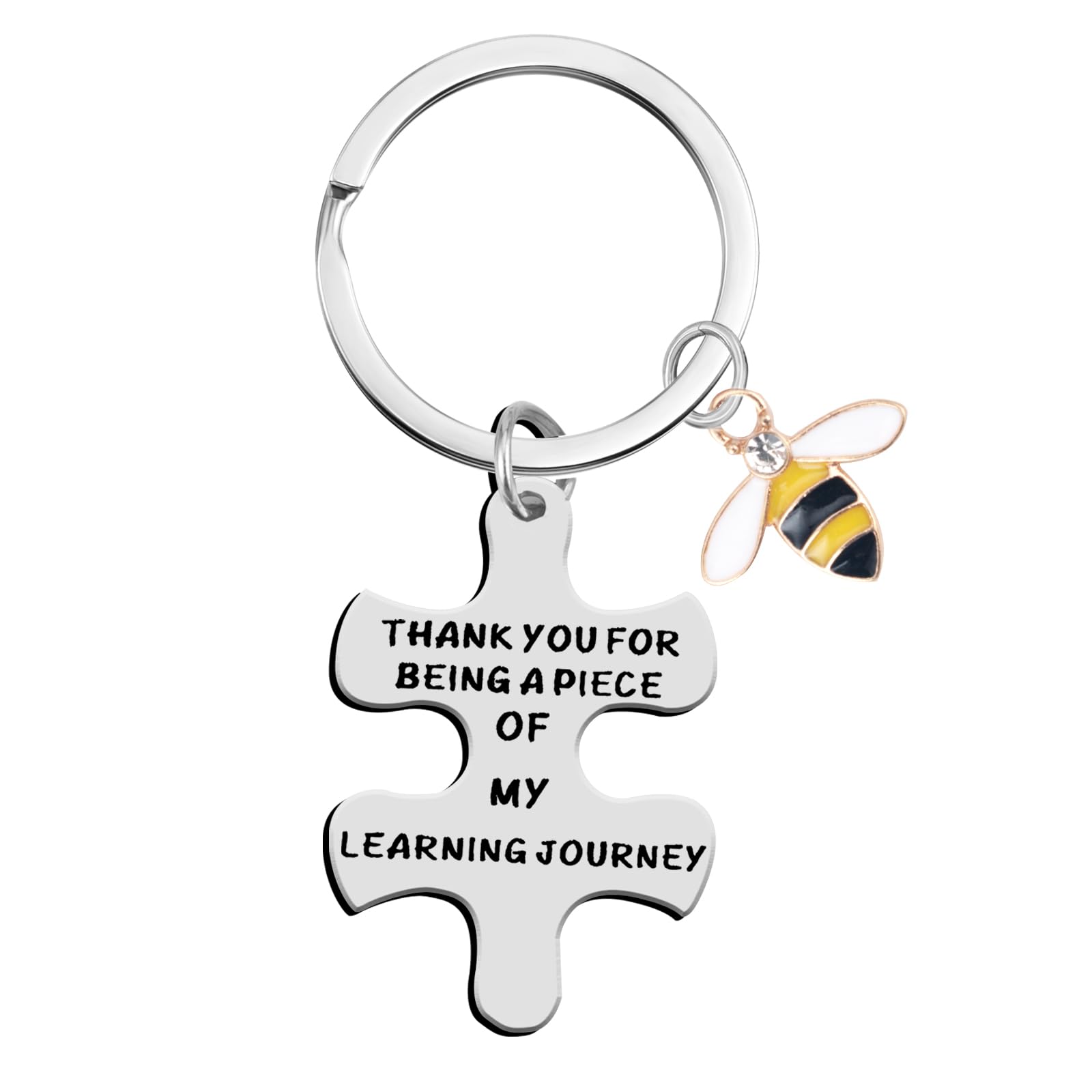 Teacher Appreciation Keychain Unique Design:The shape of this keychain is a puzzle design;with the words THANK YOU FOR BEING A PIECE OF MY LEARNING JOURNEY written on it;teacher appreciation gifts;thank you gift for teachers