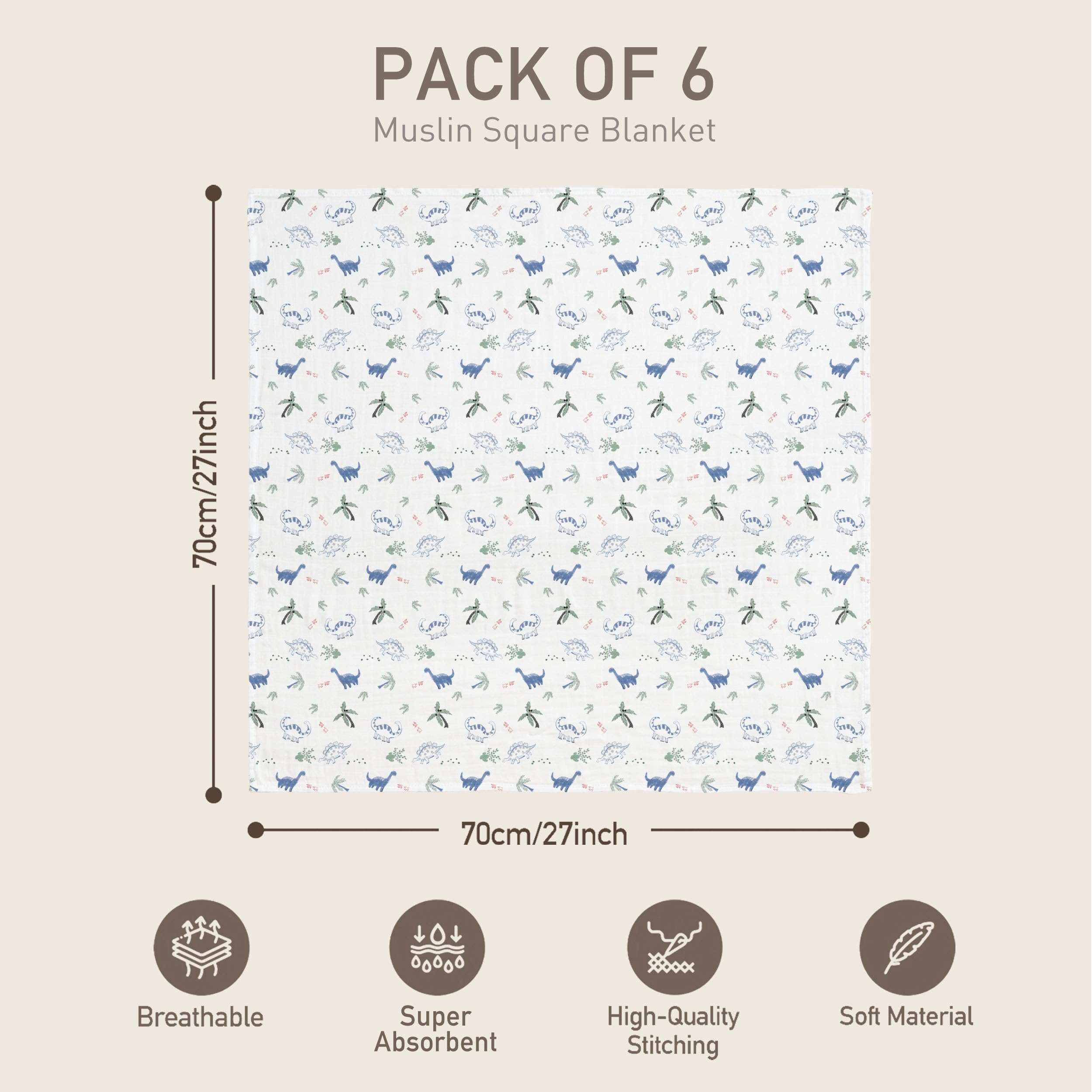 Four Seasons General & Versatile: Due to their practical size (70 x 70 cm, SIX-pack), these baby blankets can be used for a variety of purposes, such as a receiving blanket, cuddle blanket, nursing cover, sunscreen for strollers, burp cloth, car seat cover, play mat, changing pad, mini crib sheet, cleaning the face, catching spit-up, sunshade cover, picnic pad, or tummy time blanket. Fast-drying and ready for the next use, they provide even more day-to-day versatility for parents