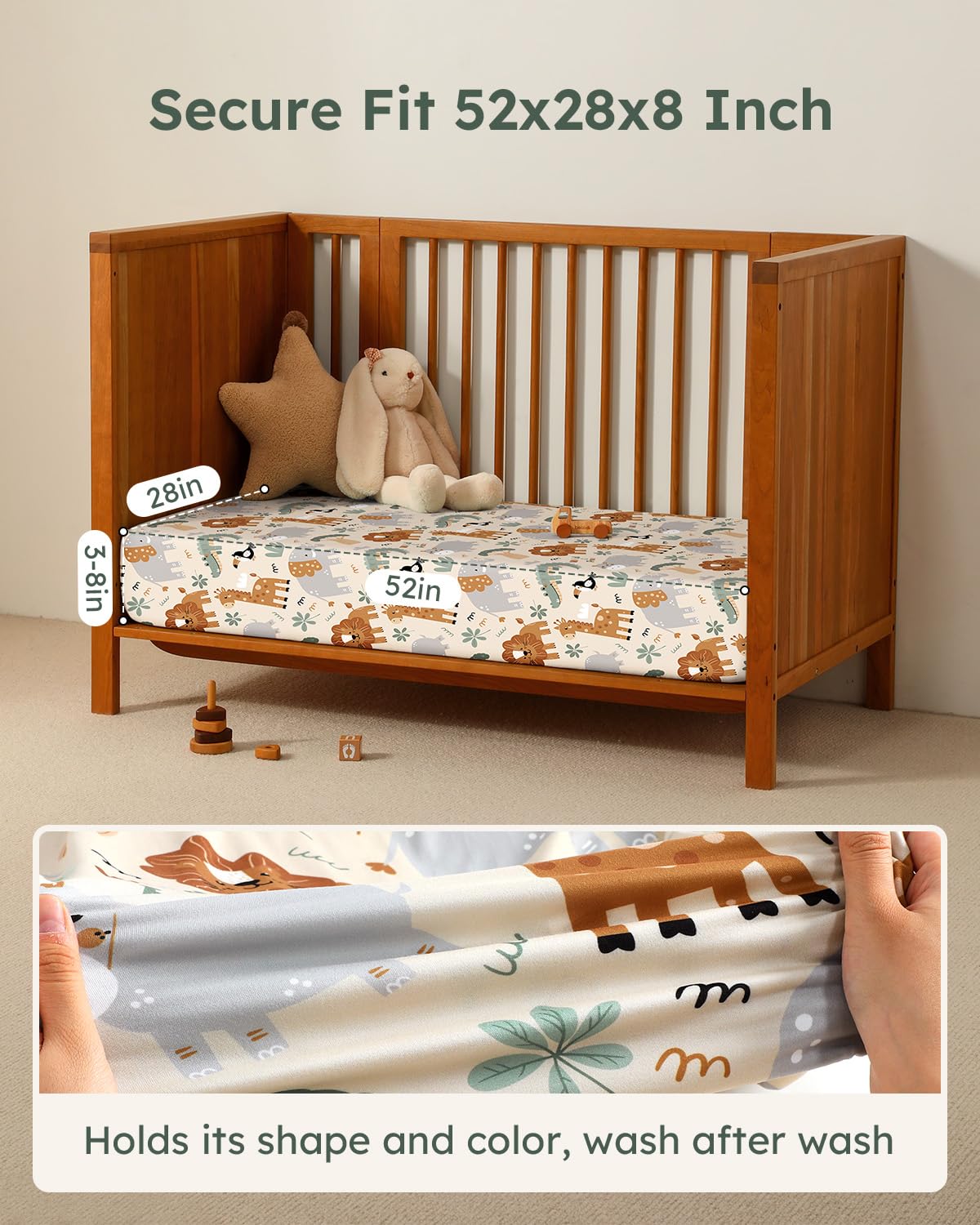 Universal Fit: Measures 52''X 28''X 8'', our crib sheets are designed to snugly fit most standard crib mattresses and toddler mattresses. 8-inch deep pocket offers safe and reliable 360° coverage, providing ultimate protection for your exquisite mattress.