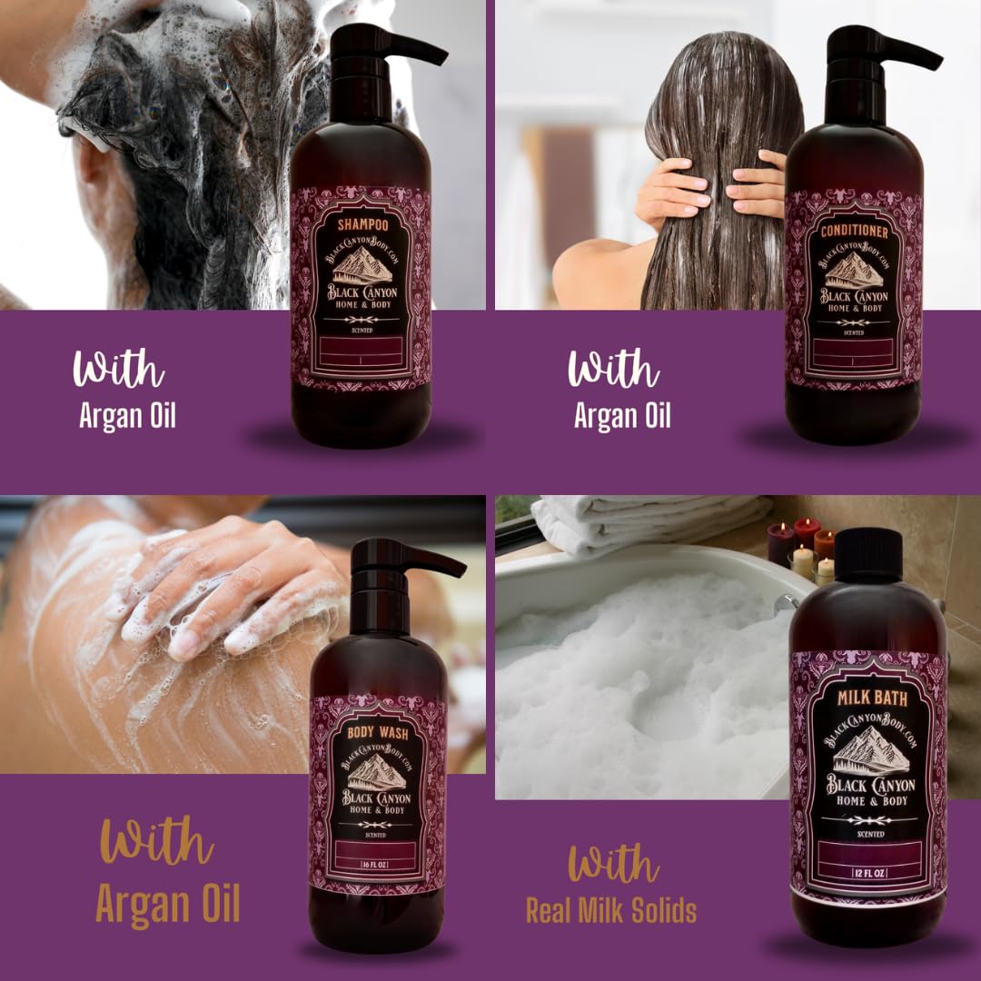 12 Oz Lotion - 12 Oz Massage Oil - 16 oz Shampoo - 16 oz Conditioner - 16 Oz Body Wash - 12 Oz Milk & Bubble Bath - 4 Oz Body Spray - 4 Oz Hair Detangler