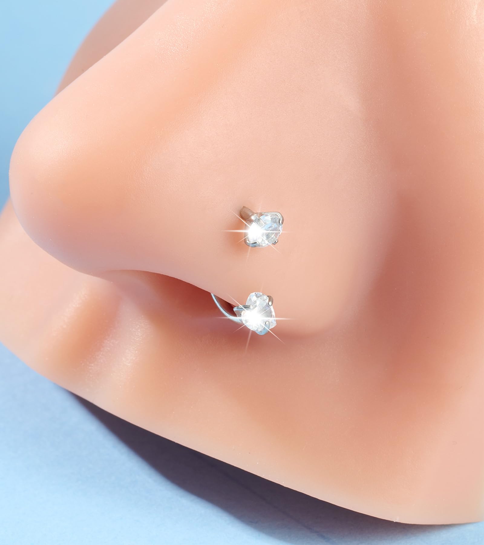 Use - Used as silver double gem horseshoe nose ring hoop 18g horseshoe nose ring half hoop gem nose hoops 18 gauge nose ring hoop 18g half hoop Earring Hoops horseshoe half hoop tragus hoops 18 gauge double gem septum nose ring 18g septum jewelry for women