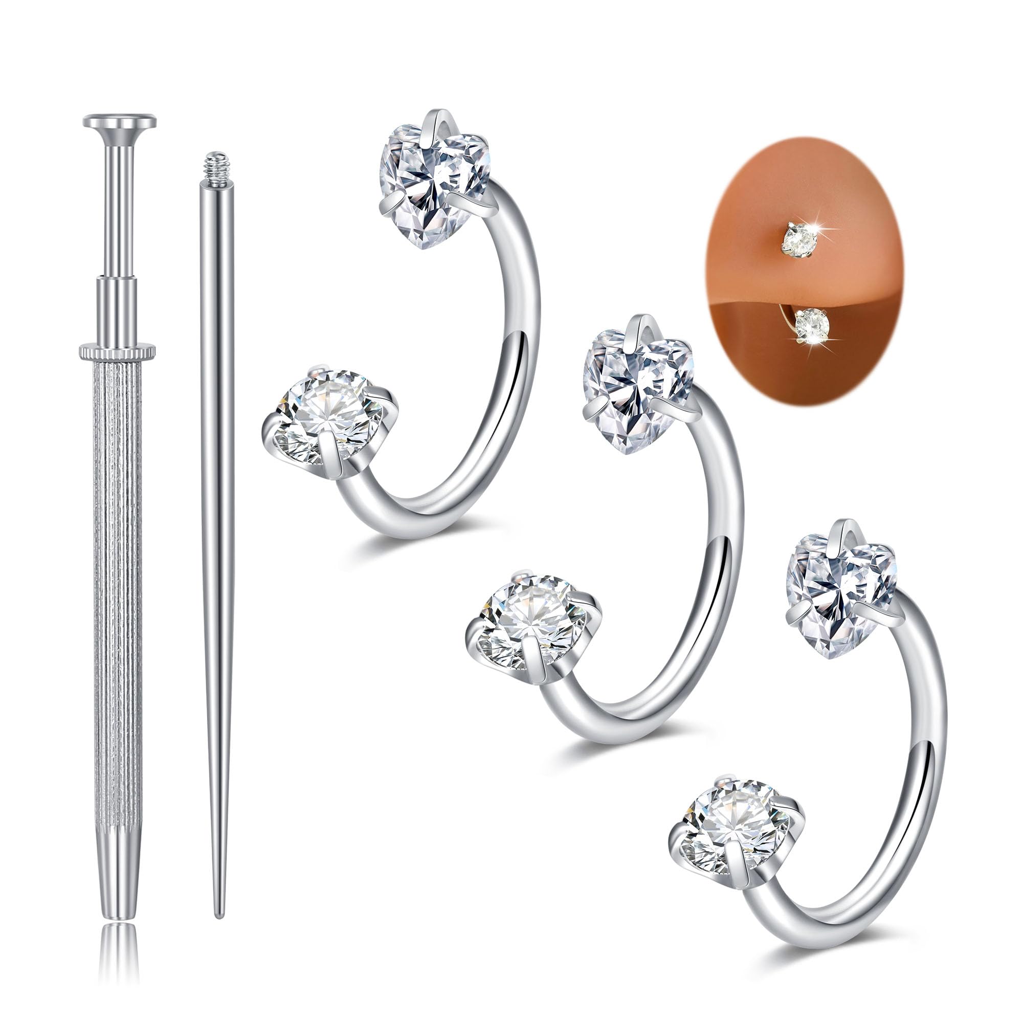 Order Contains - 3pcs silver half nose hoop ring 18g horseshoe nose ring for women + 1pcs piercing taper insertion tool piercing threader tool+ 1pcs piercing ball grabber tool