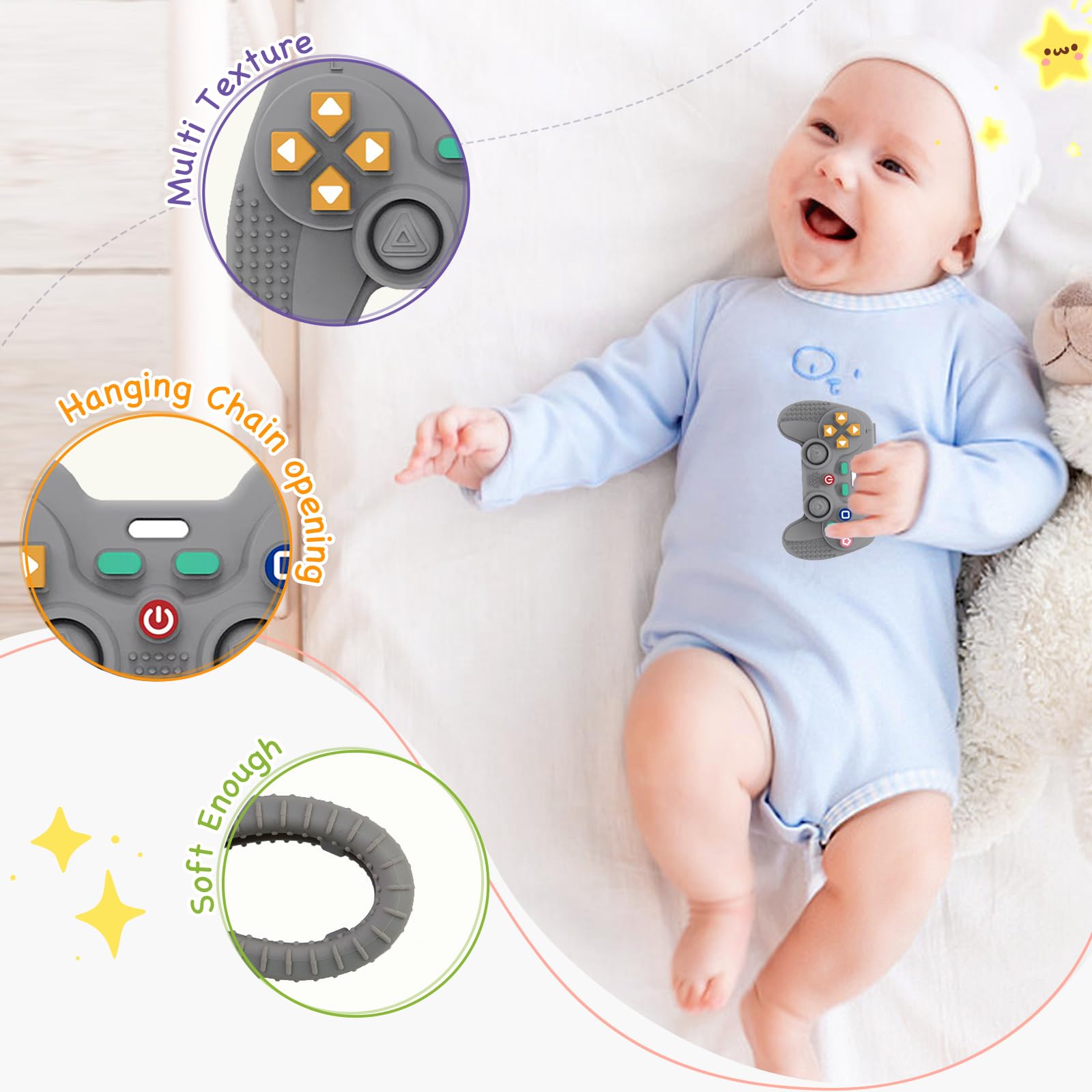 【Safe High-Quality Material】Baby Remote Control Toy is made of Food Grade Silicone, Non-toxic, BPA-free, Durable for biting and chewing. The Baby Toys 0-6 Months are Soft, Smooth surface, No burrs. The soft and bendable silicone material can avoid damaging your baby's gums.