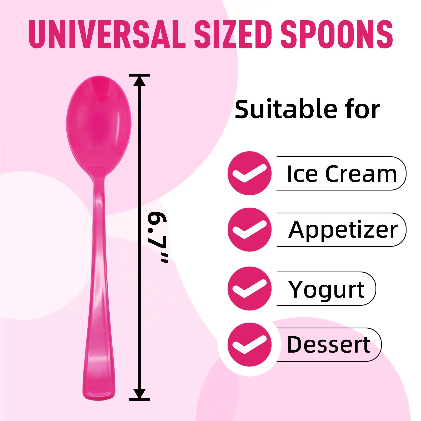 【Large Capacity Package】: Each pack contains 50 hot pink plastic spoons, no need to buy frequently, suitable for family storage, restaurant use or large party activities, easily meet the needs of many people. Offering multiple different color options, they are sure to match your decor.
