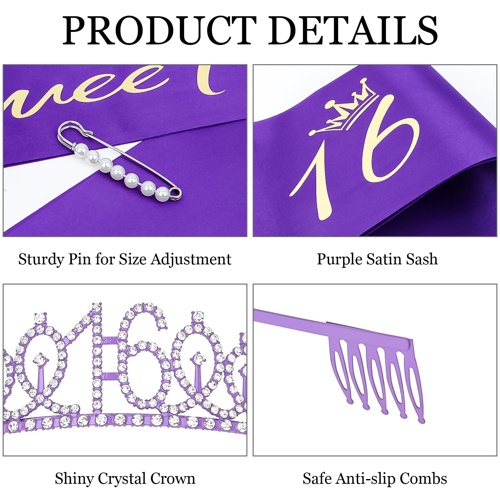 Package Included: The birthday kit includes "sweet 16 "sash, 16th rhinestone tiara and pearl pin. You will be like a queen in your birthday celebration