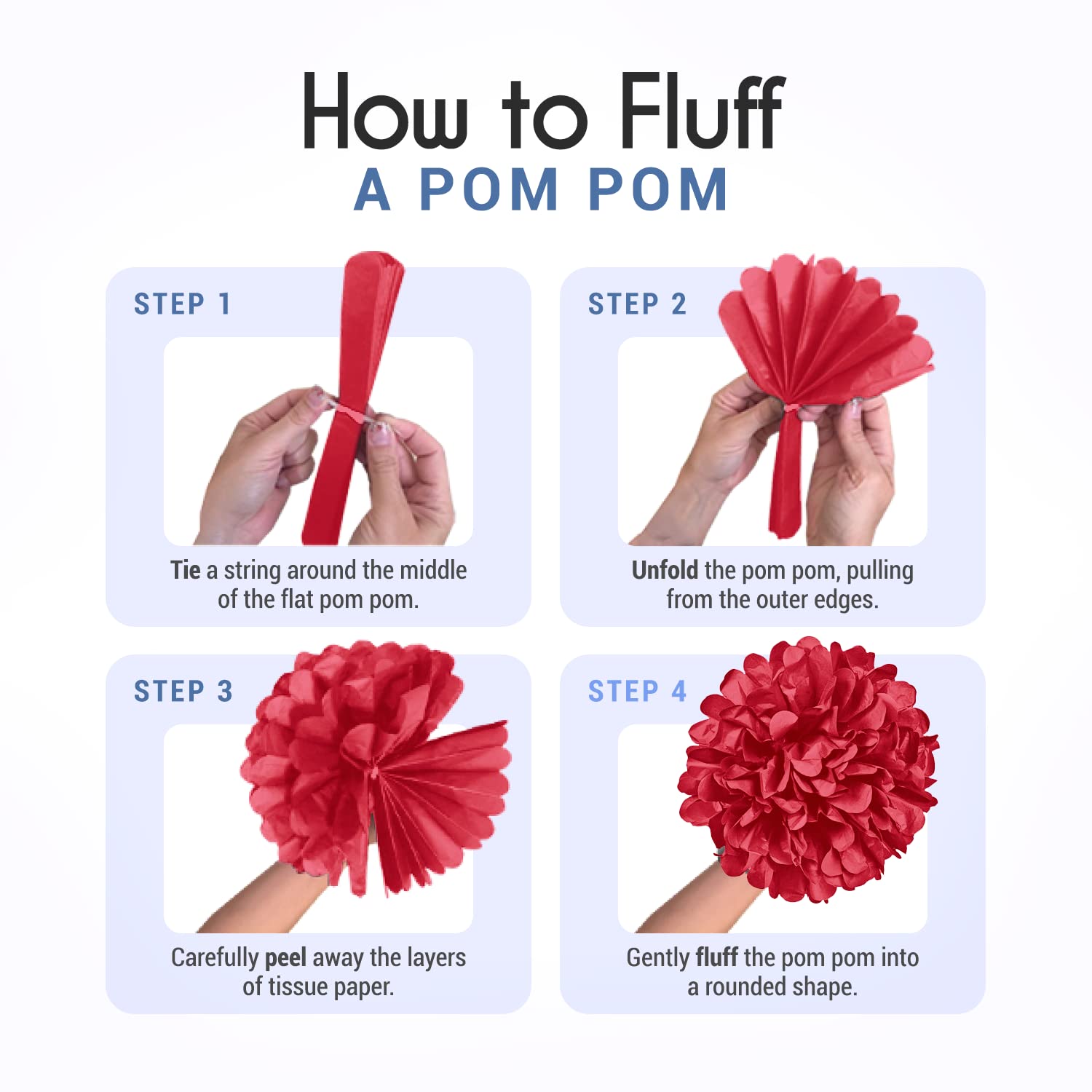 Simple DIY Crafting: Enjoy crafting beautiful tissue paper flowers with ease by simply tying, unfurling, and shaping each pompom. This kit is a must-have for craft supplies enthusiasts and offers a creative outlet for decorating wedding showers with elegance