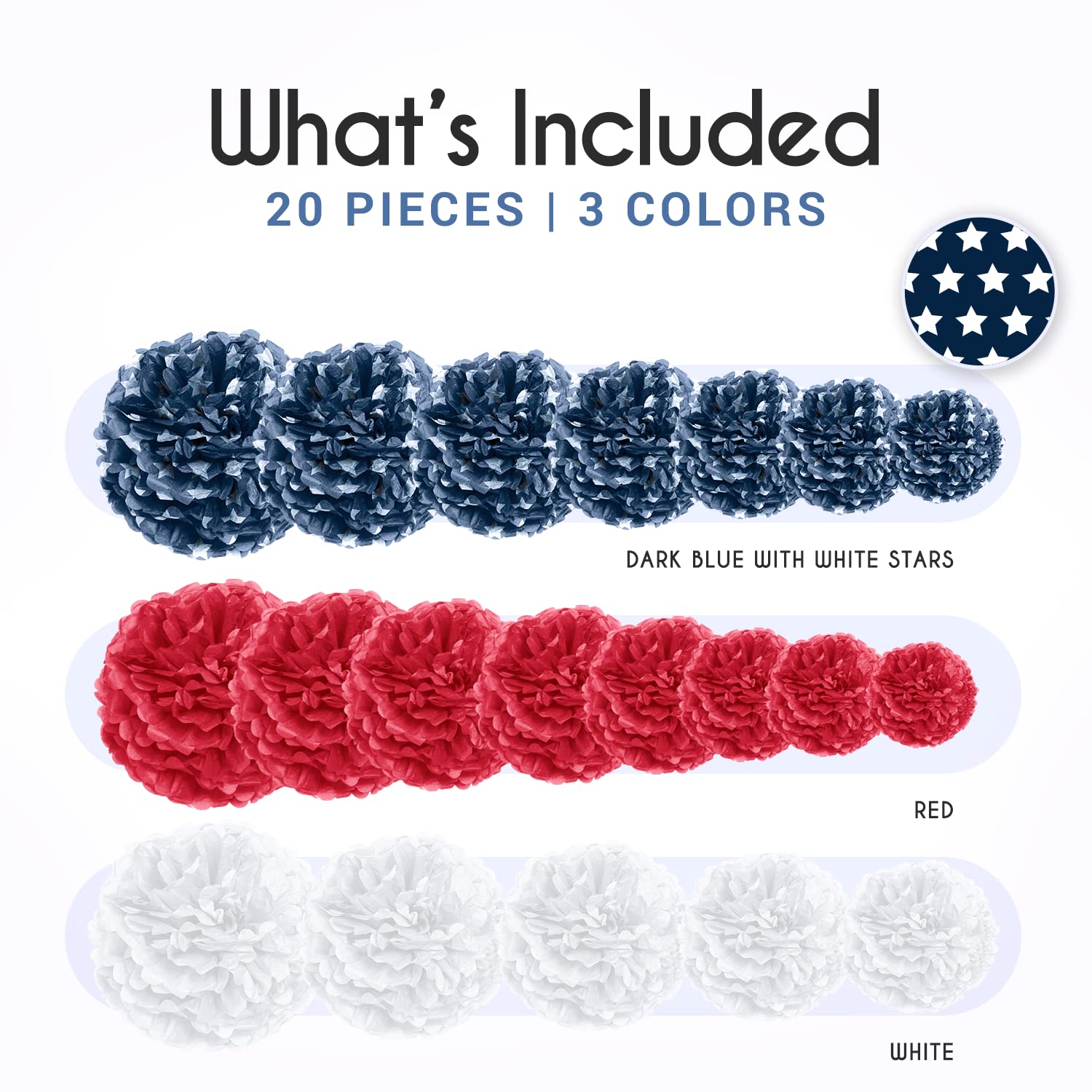 Vibrant Party Decor: Transform any celebration with the EpiqueOne 20-Piece Tissue Paper Pom Poms Kit, featuring stunning paper flowers in red, white, and blue. Ideal for wedding decorations, bridal showers, or birthday parties, these pom poms add a festive flair
