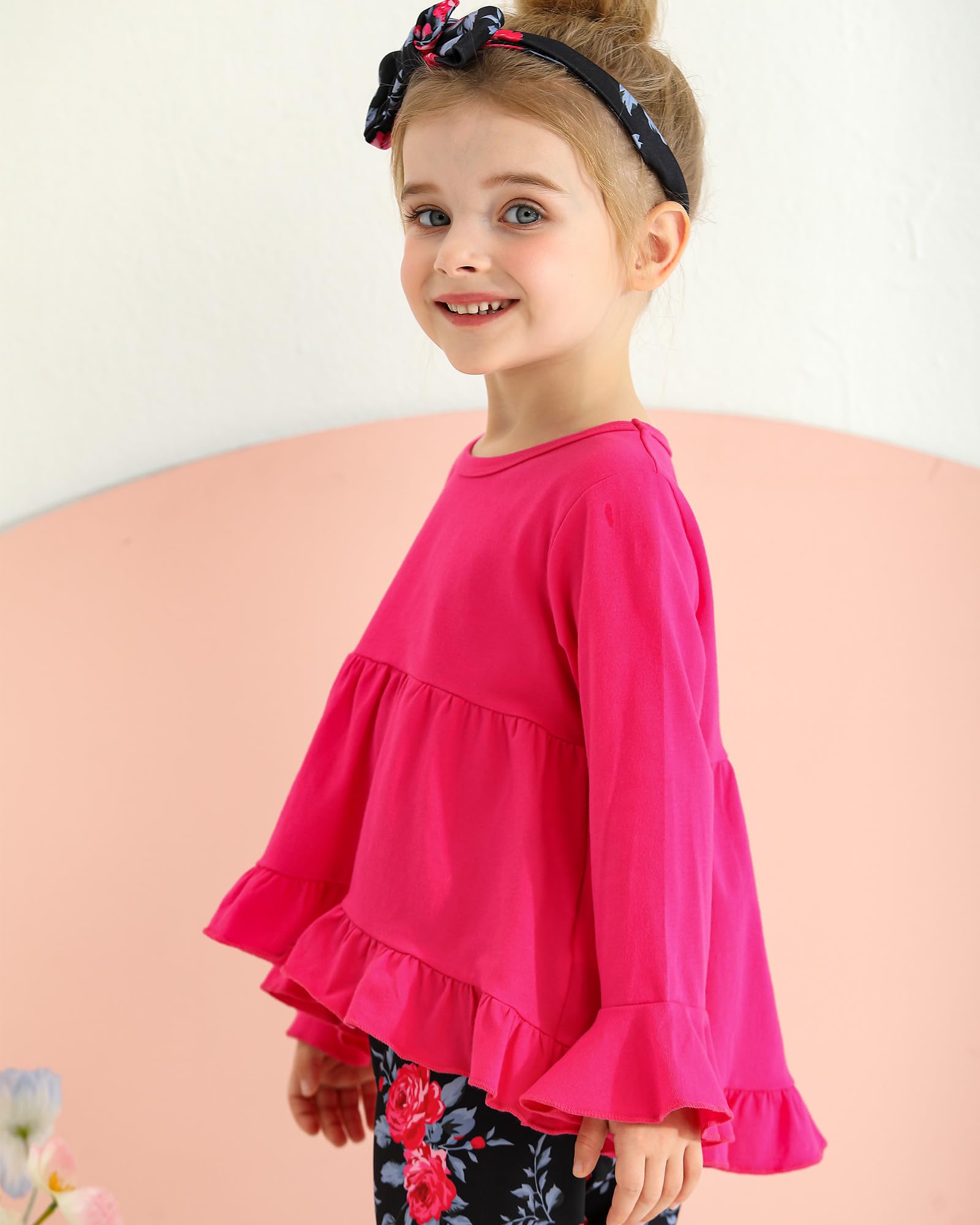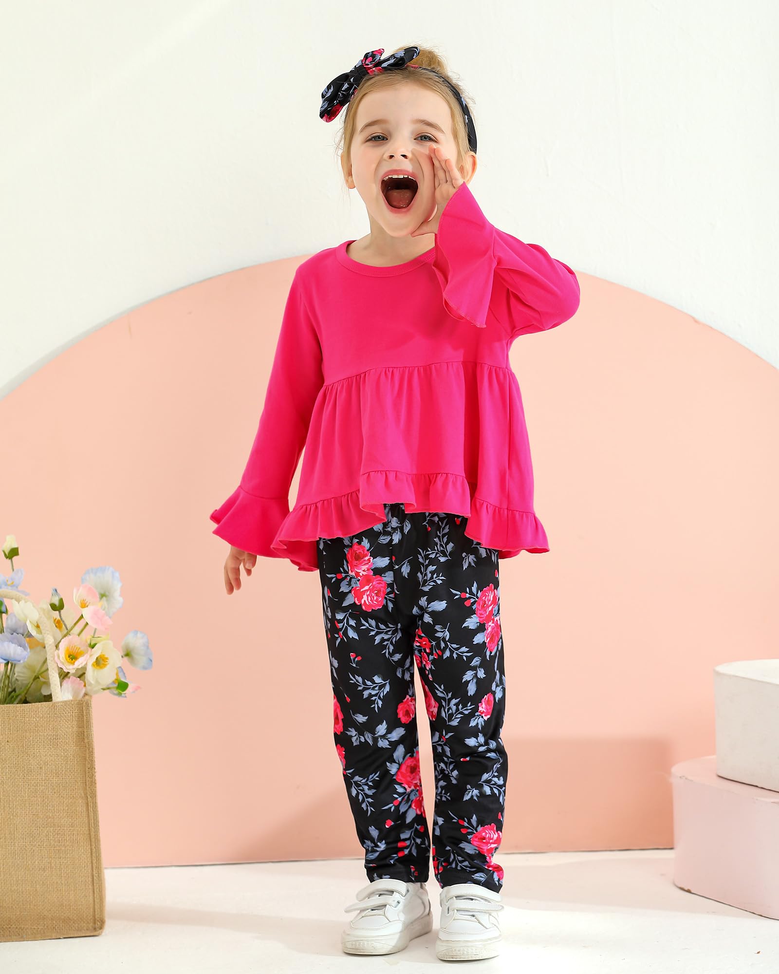 Design: Long sleeve toddler girl shirt,hi-lo irregular hem design,elastic waist,cute prints—all the details we love for this toddler girl outfits.