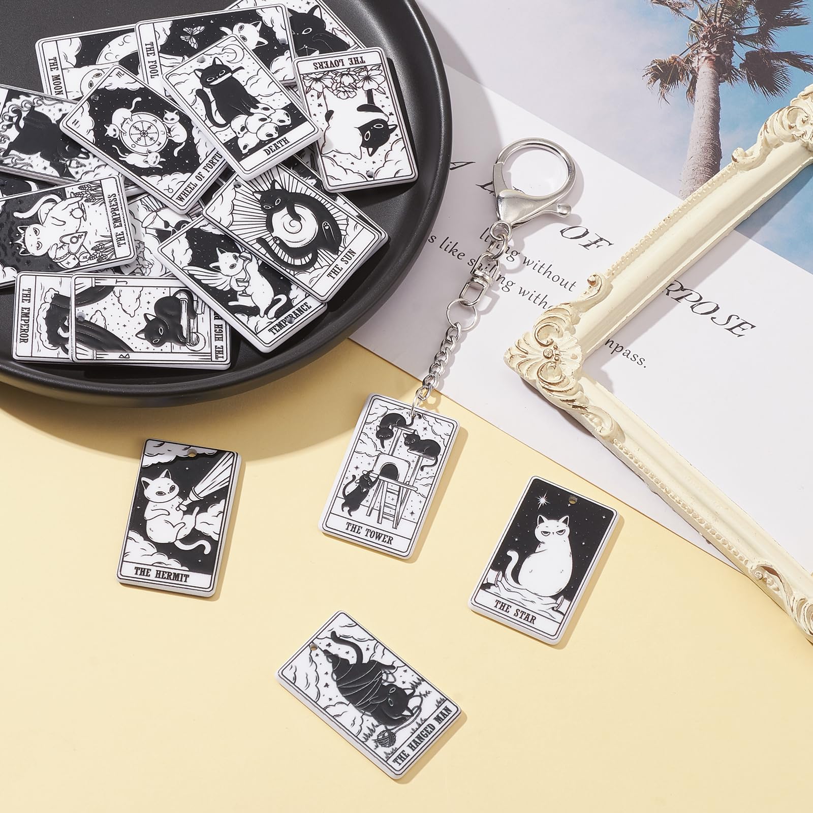 Quantity and Size: You will receive 22 pieces of tarot charms in total, including 22 styles, 1 piece for 1 style. Size: about 0.94 inches/24mm wide, 1.54 inches/39mm long, 0.10 inches/2.5mm thick, hole: 0.07 inches/1.8mm