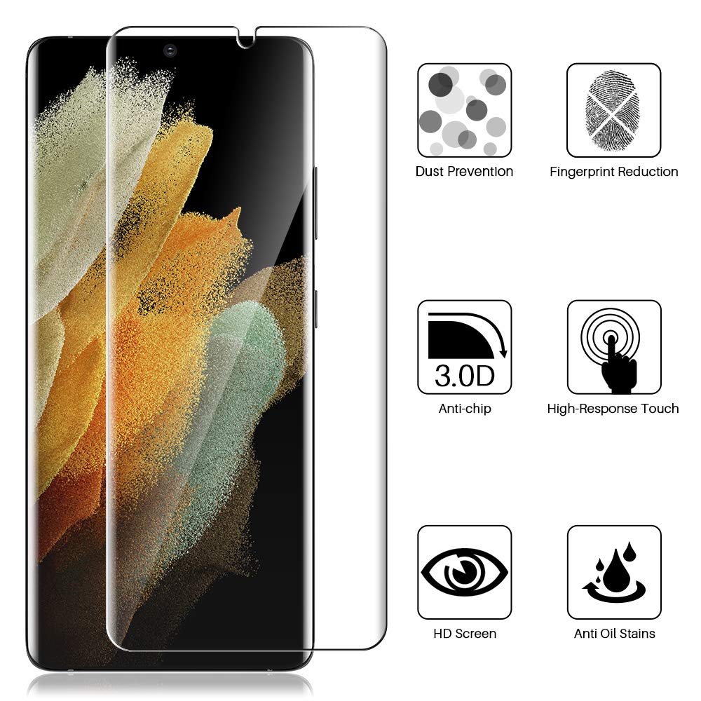What's in the Box: 3 pack flexible TPU screen protectors compatible for Samsung Galaxy S21 Ultra. Warm Tips: Please put on the screen protector before watching the installation video