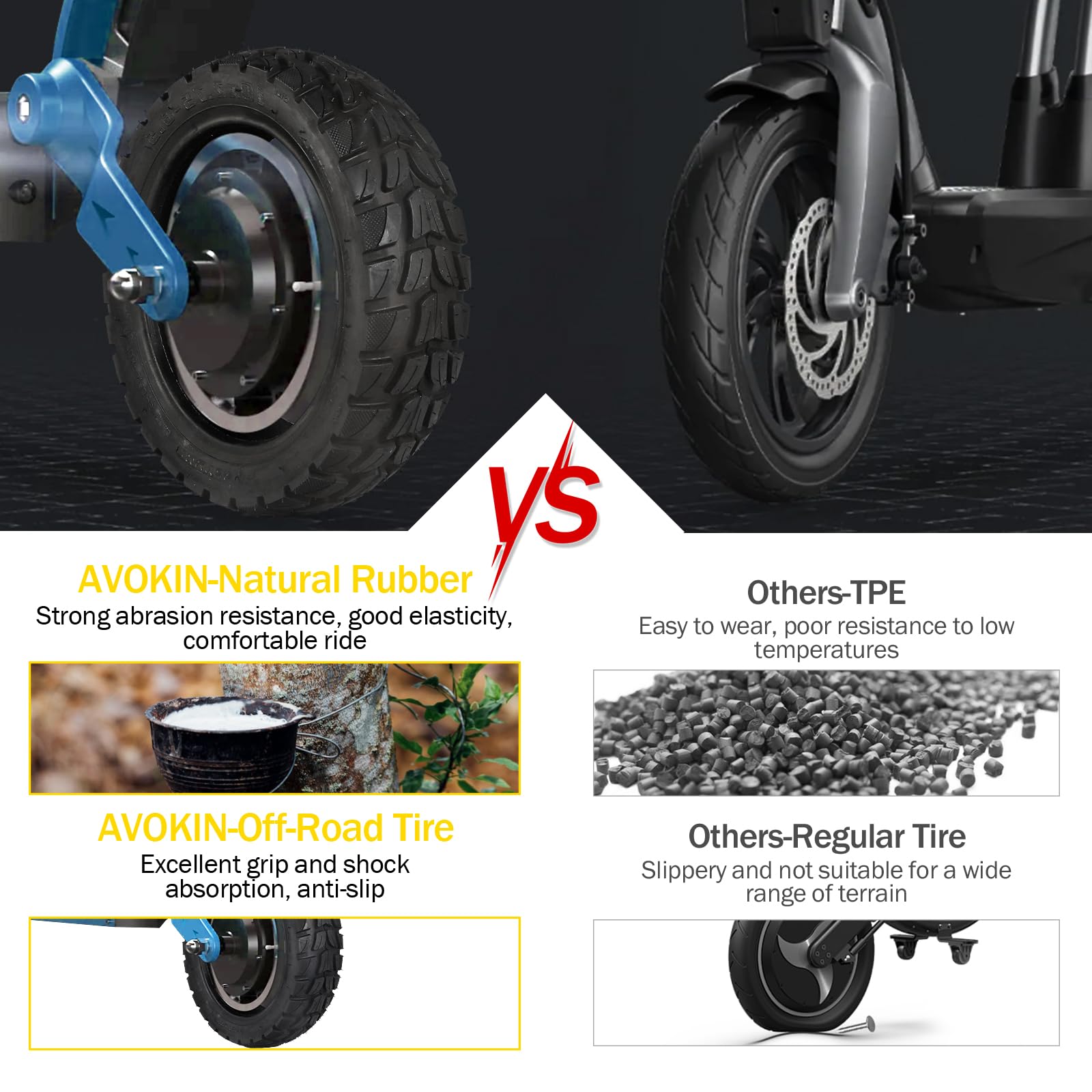Quality: AVOKIN scooter tires made of high quality rubber, which is more flexible and durable than ordinary tires, and can better disperse the impact, reducing the risk of failure due to puncture or damage