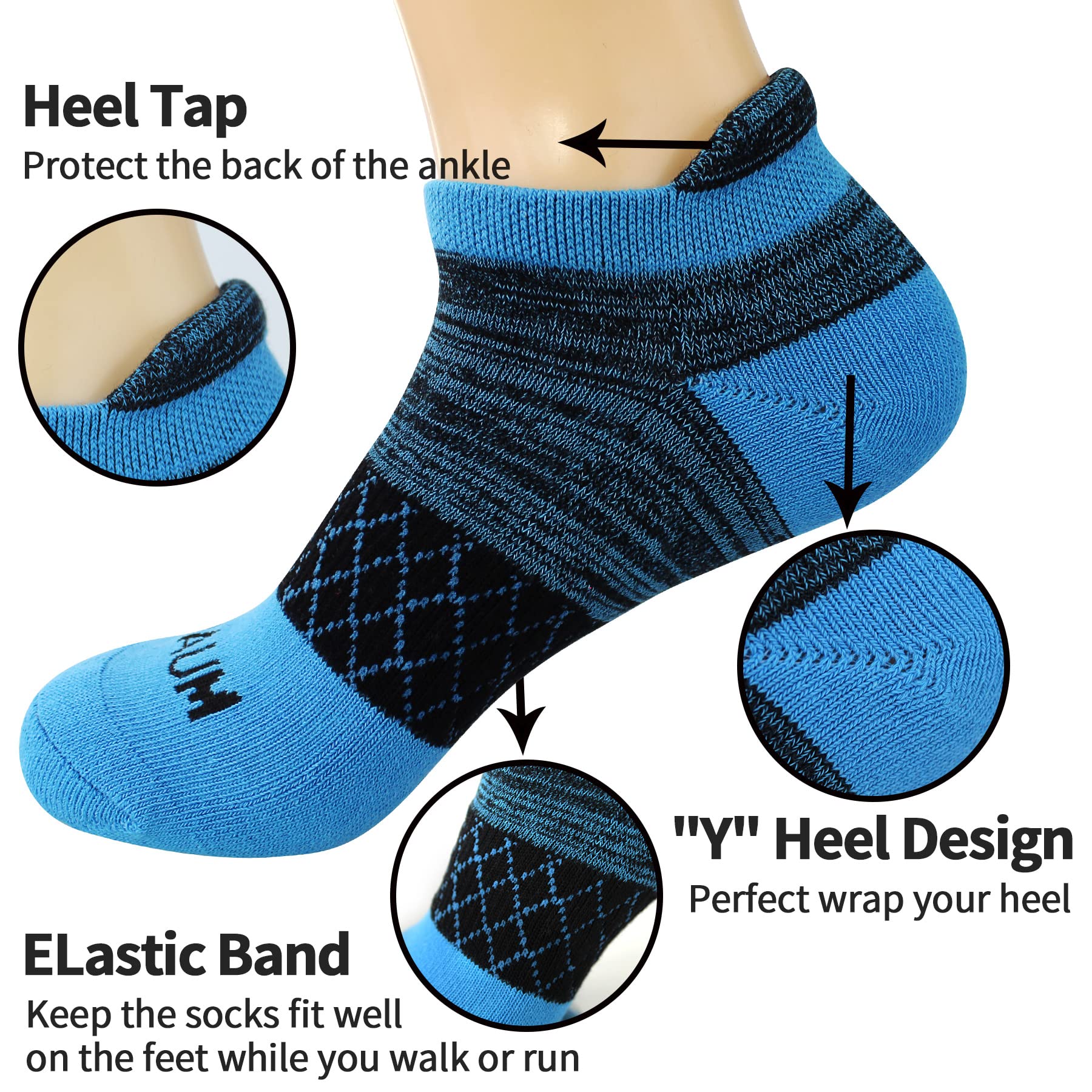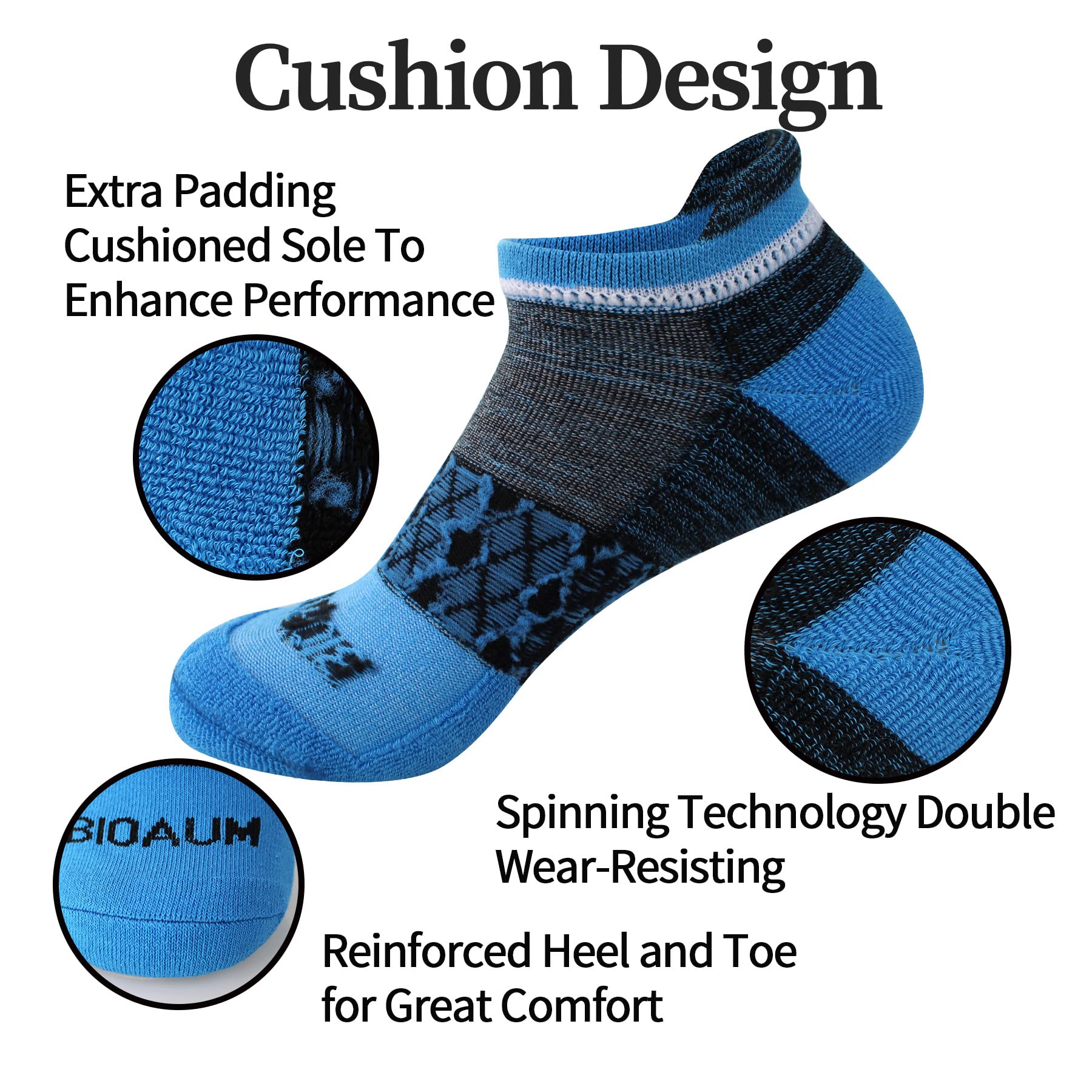 MAX CUSHIONING:Max Cushioning place in areas of high impact to reduce sock and foot pain during sports or daily activity,Comfortable to wear all day without irritating your feet skin. Arch support to improve foot arch fatigue and keep sock in place.