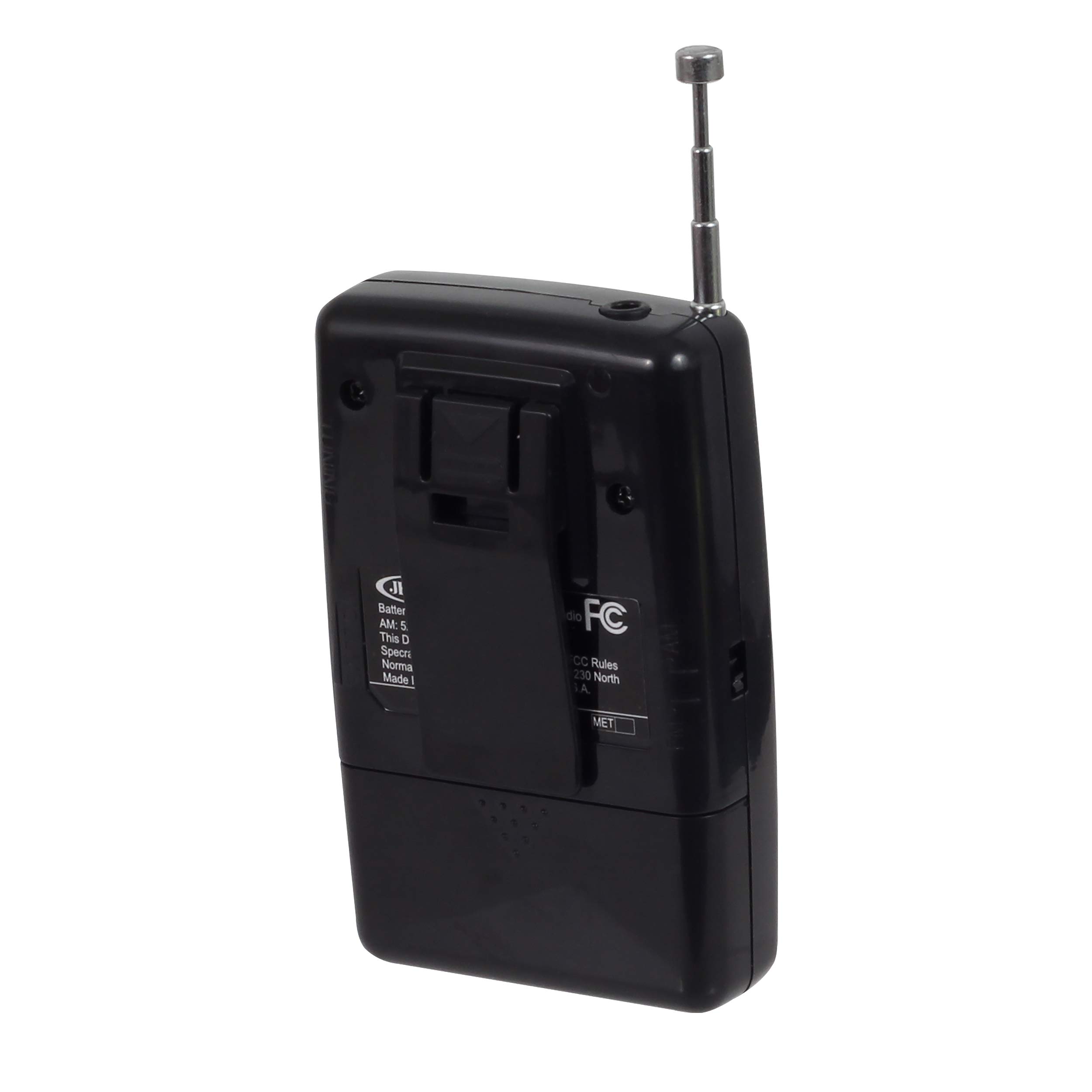 The JENSEN MR-80 AM/FM Portable Pocket Radio is portable and convenient. Take it to the beach, the ball game or anywhere else you want to listen to your favorite AM or FM broadcast. Enjoy clear, static-free audio from the built-in speaker on this compact and durable device. This portable radio comes with a snap-in belt clip, telescopic antenna and earphone jack. It operates on 2 AAA batteries, which are not included. Finally, an affordable, easy way to listen to music on the go!