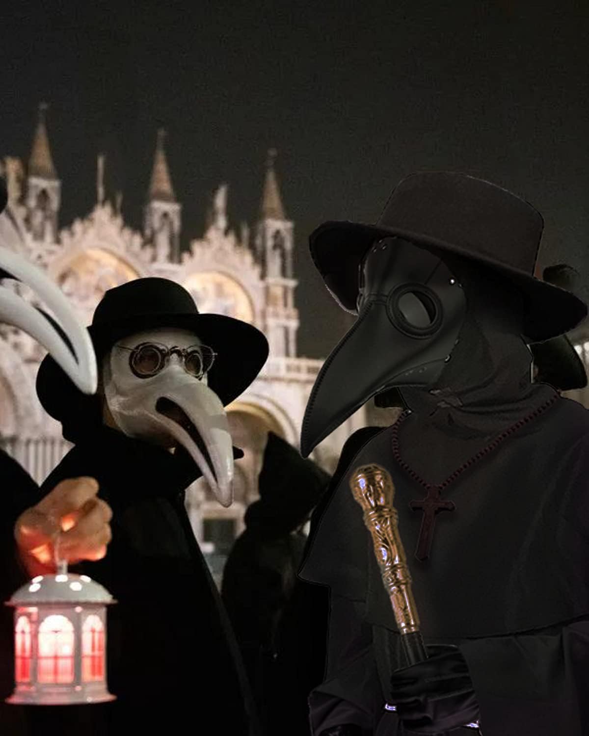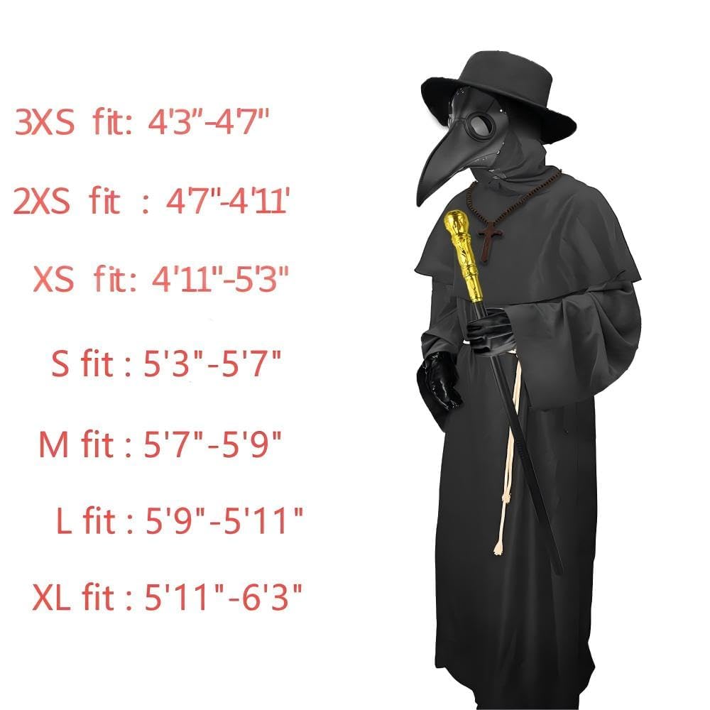 Halloween costumes for men 6 IN 1 : Package included all you need : Bucket hat,Leather plague mask,Black robe ,Wooden cross necklace,Gloves and Scepter
