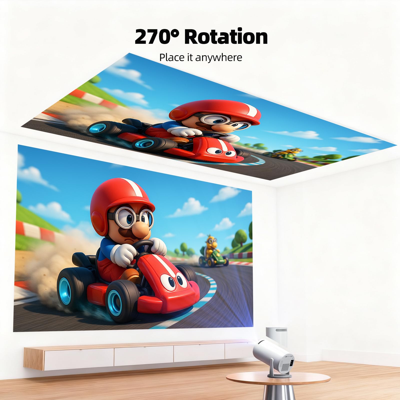 【🔄 270° ROTATABLE DESIGN FOR ULTIMATE FLEXIBILITY】 This mini projector has innovative 270° rotation base allows projection from any angle - ceiling, wall, floor, or tent. Perfect for bedroom ceiling movies, outdoor camping under stars, or backyard theater. Compact pocket sizew, truly portable entertainment anywhere.