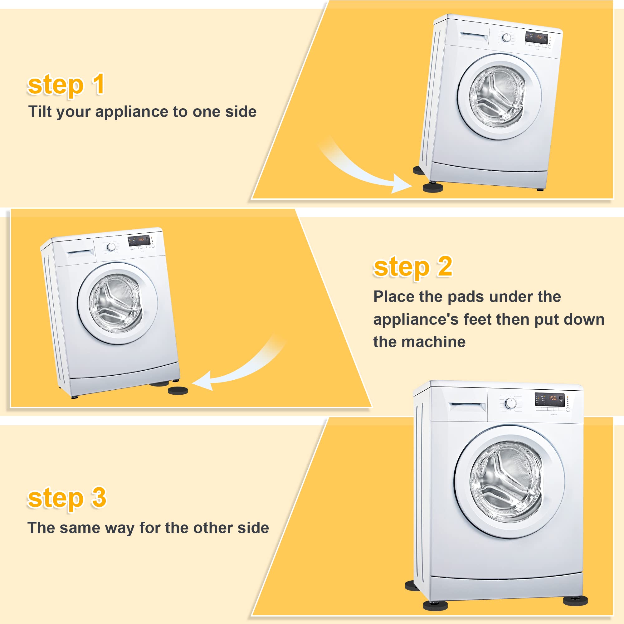 Our anti vibration pads can absorb vibration, reduce noise in the laundry room caused by sliding and movement of the washer or dryer